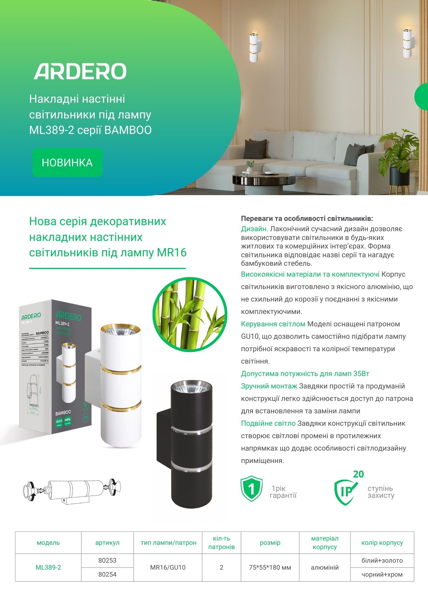 Накладні світильники під лампу Ardero ML389-2 є ідеальним вибором для освітлення будь-яких приміщень, включаючи житлові, комерційні та офісні приміщення. Вони пропонують ефективне та естетичне рішення для створення комфортного освітлення у вашому просторі.