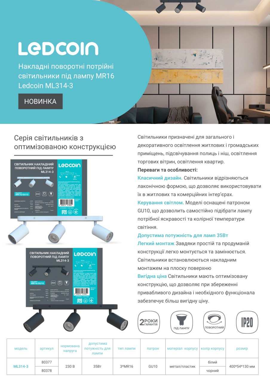 Накладні поворотні світильники під лампу MR16 Ledcoin МL314-3