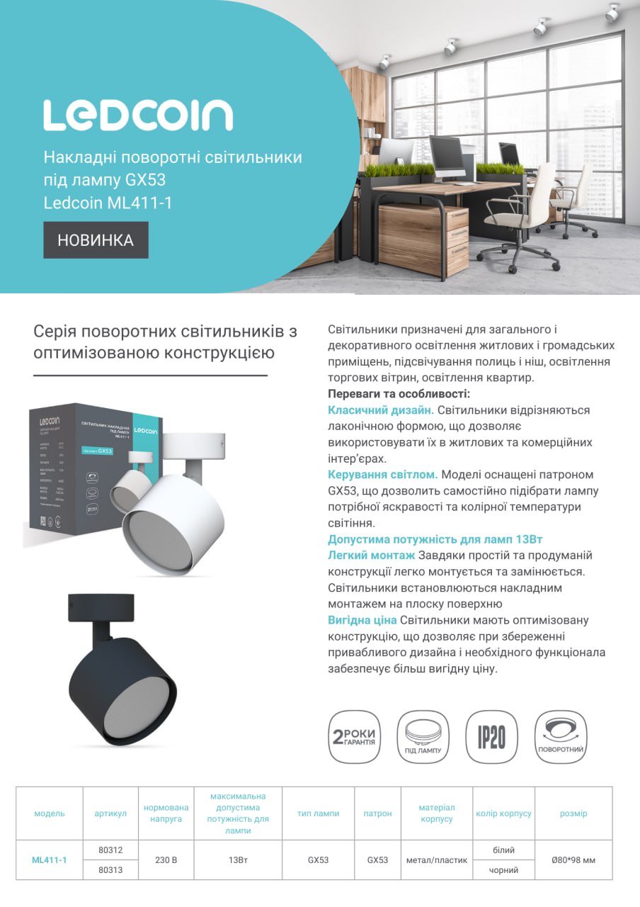 Накладні поворотні світильники під лампу GX53 Ledcoin МL411-1