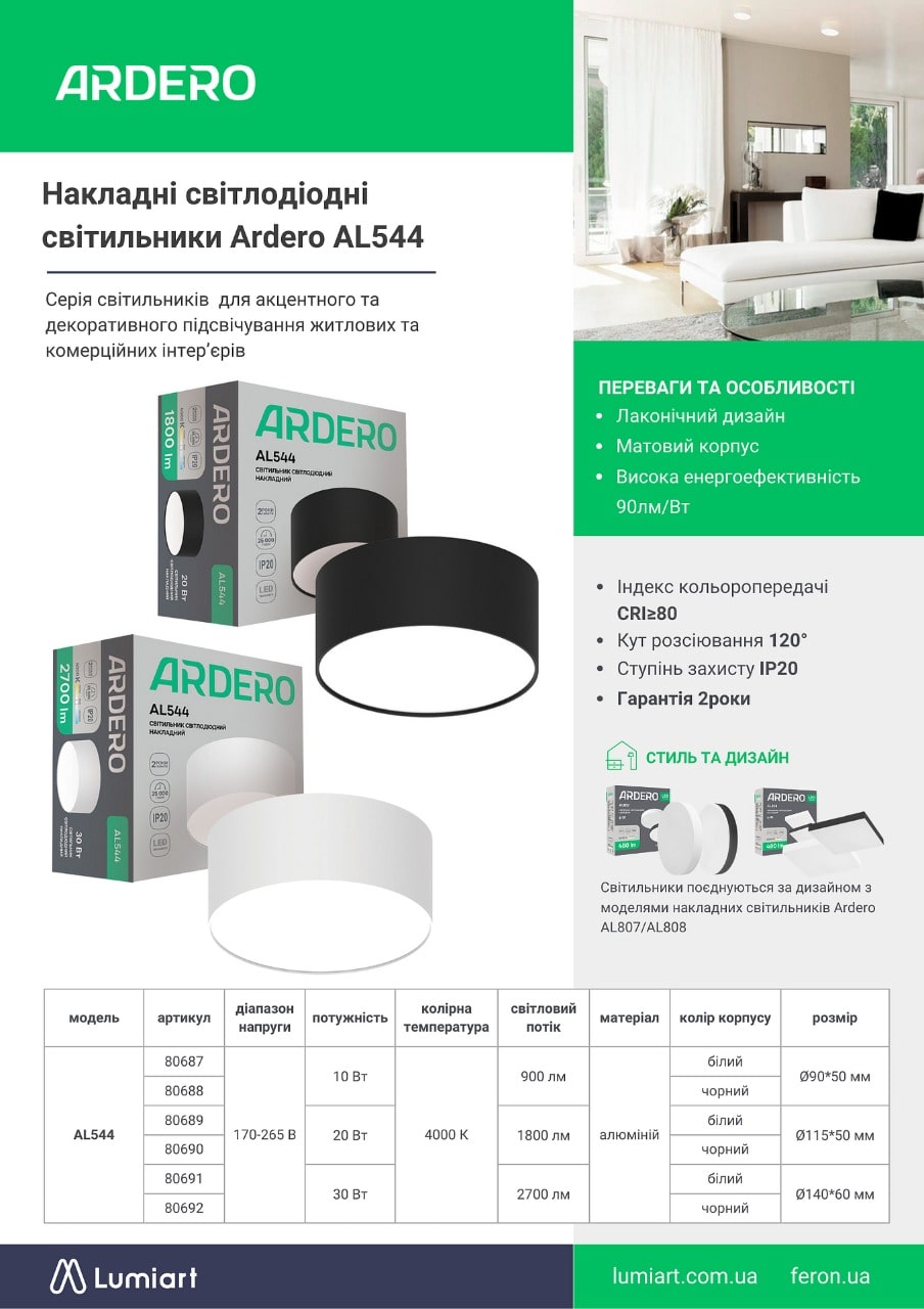 Накладні світлодіодні світильники Ardero AL544