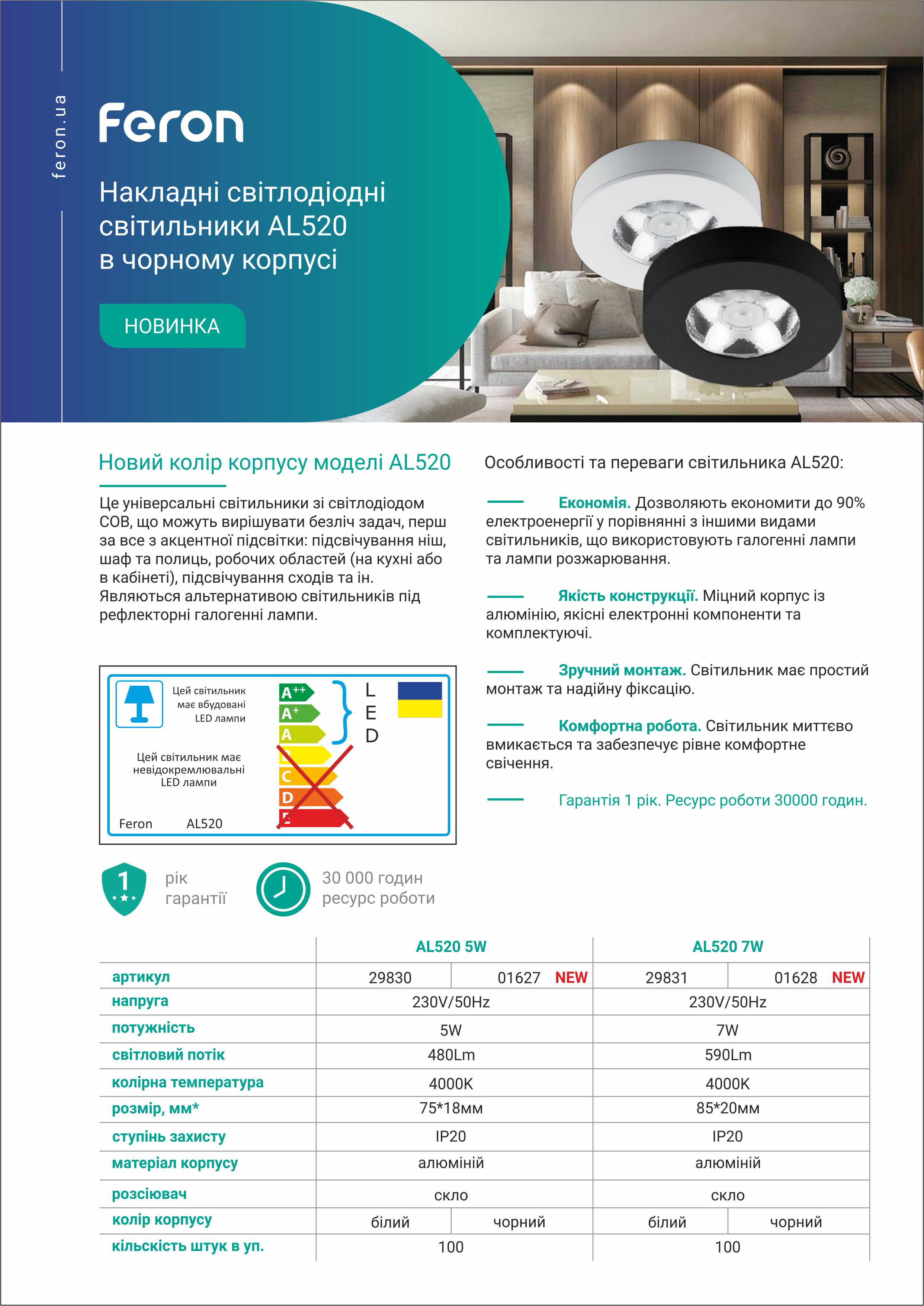 Світильник Feron AL520 — це надійне та енергоефективне рішення для освітлення вашого простору.