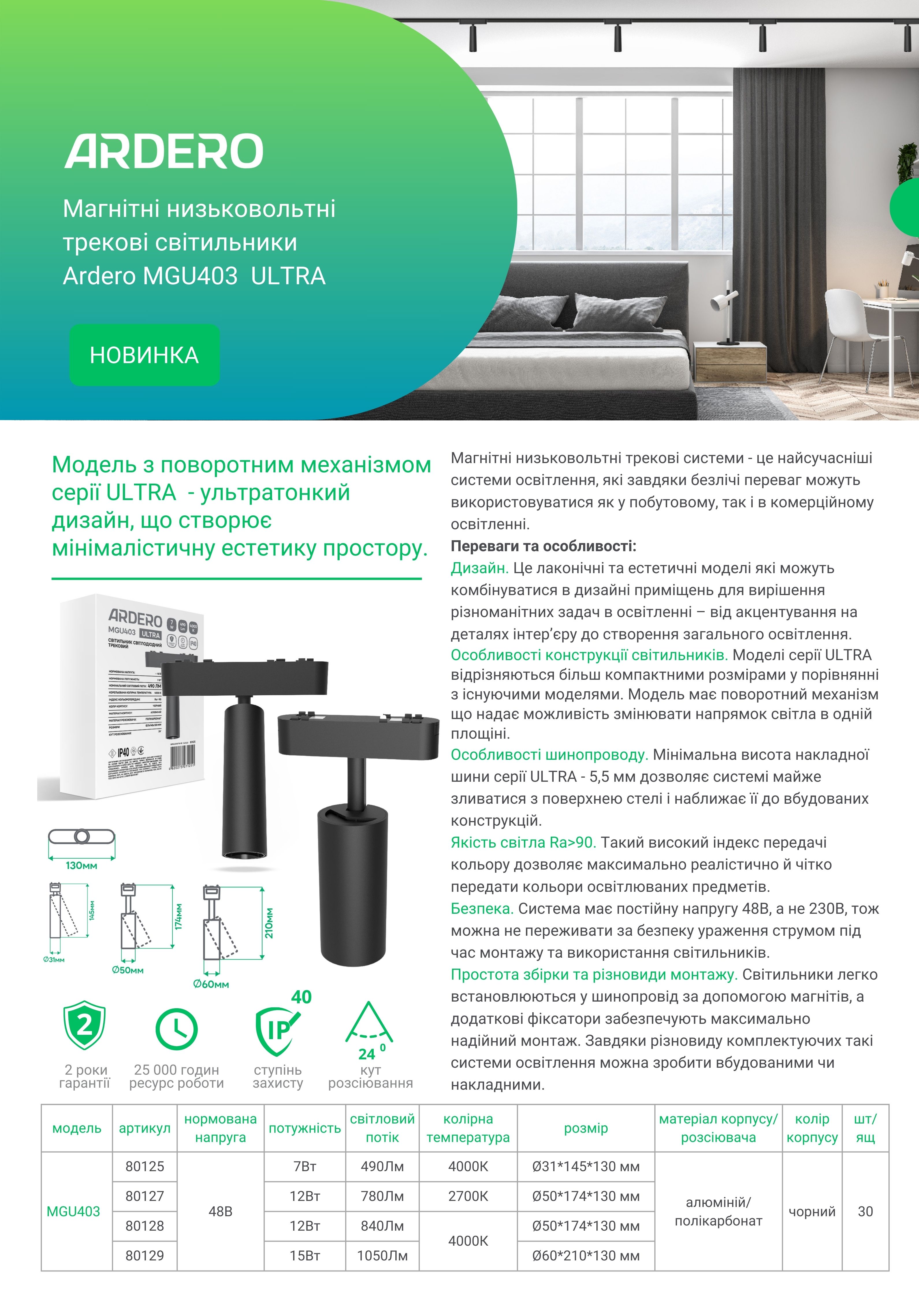Простота збірки та різновиди монтажу. Світильники легко встановлюються у шинопровід за допомогою магнітів, а додаткові фіксатори забезпечують максимально надійний монтаж.