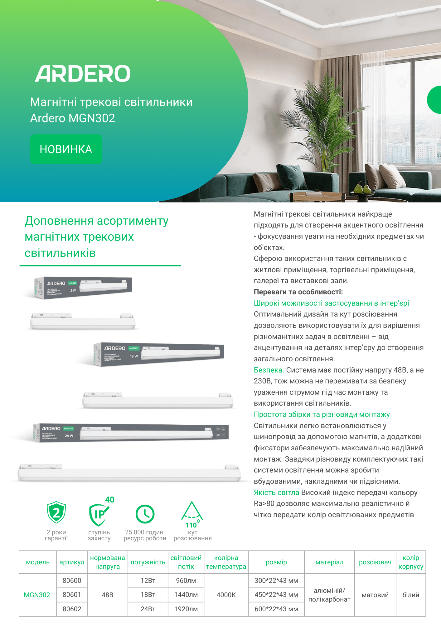 Магнітні трекові світильники Ardero MGN302