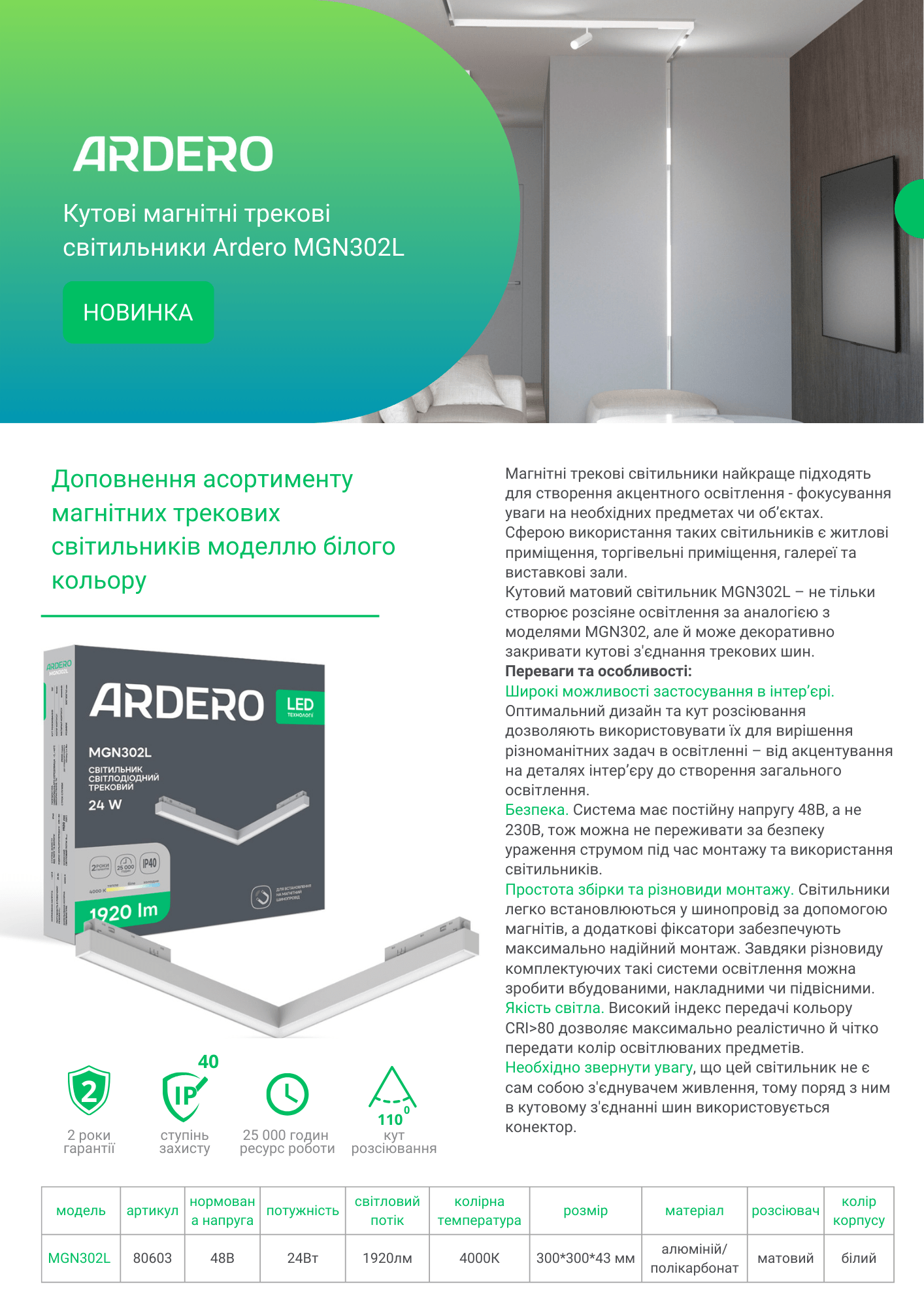 Кутові магнітні трекові світильники Ardero MGN302L