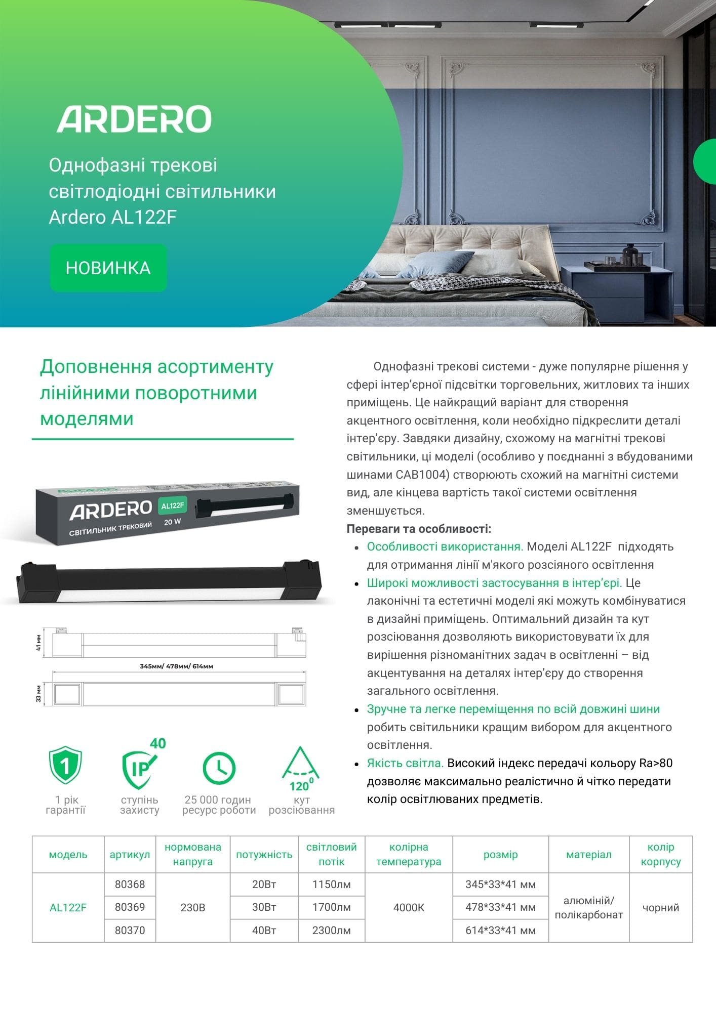 Однофазні трекові світлодіодні світильники Ardero AL122F