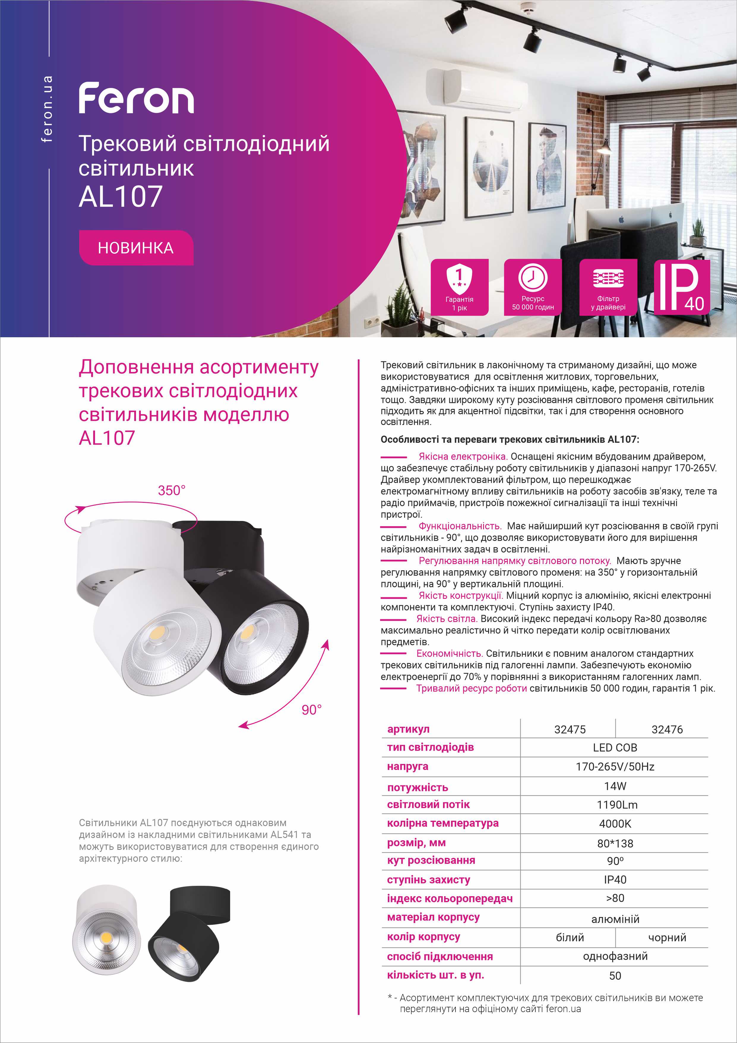 | Тип світильника | трековий |