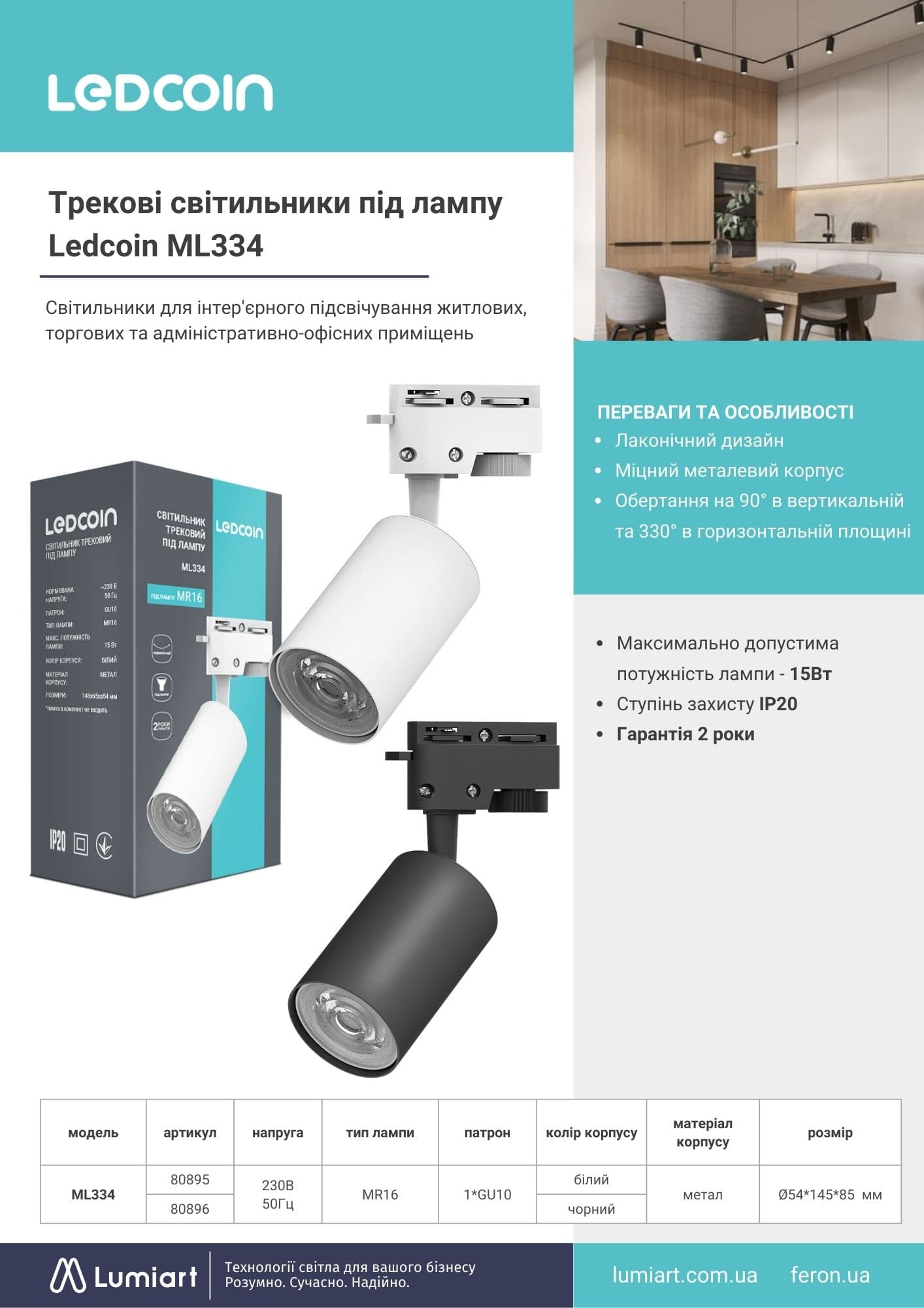 Трекові світильники під лампу Ledcoin ML334