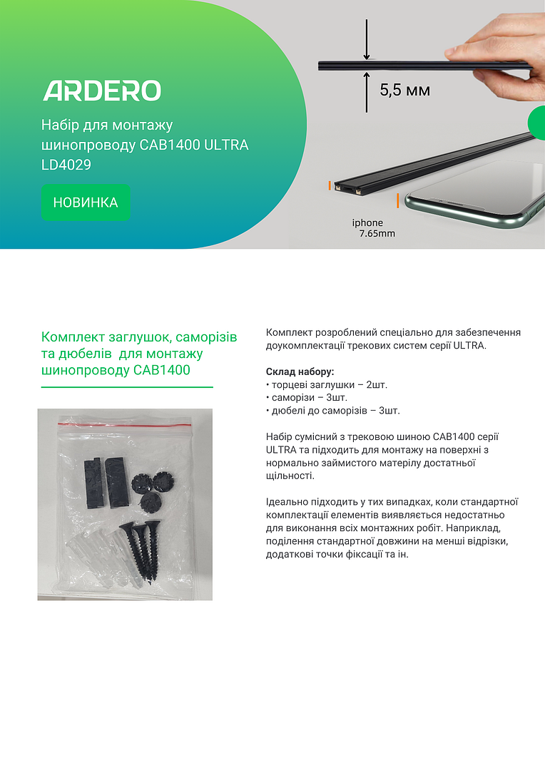 Комплект заглушок, саморізів та дюбелів для монтажу шинопроводу СAB1400.