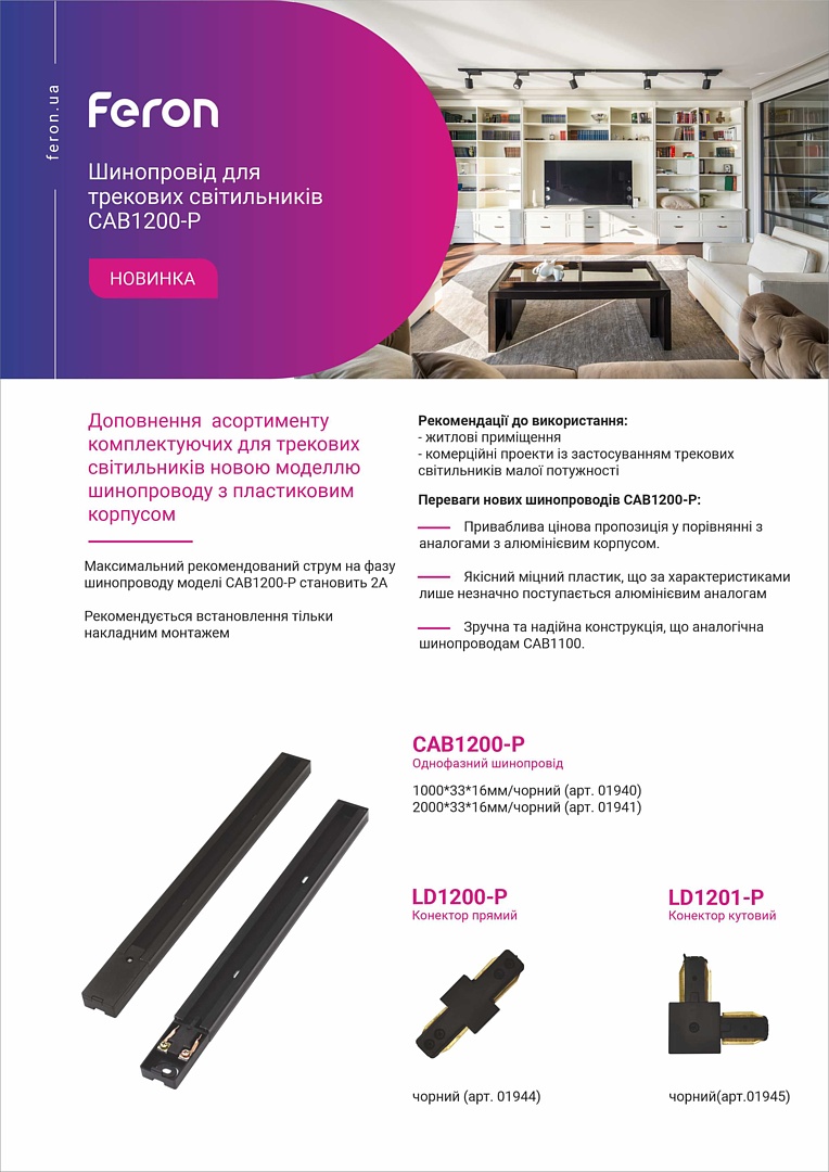 Шинопровід Feron CAB1200-P – це ідеальне рішення для тих, хто цінує якість, надійність та естетику в організації освітлення.