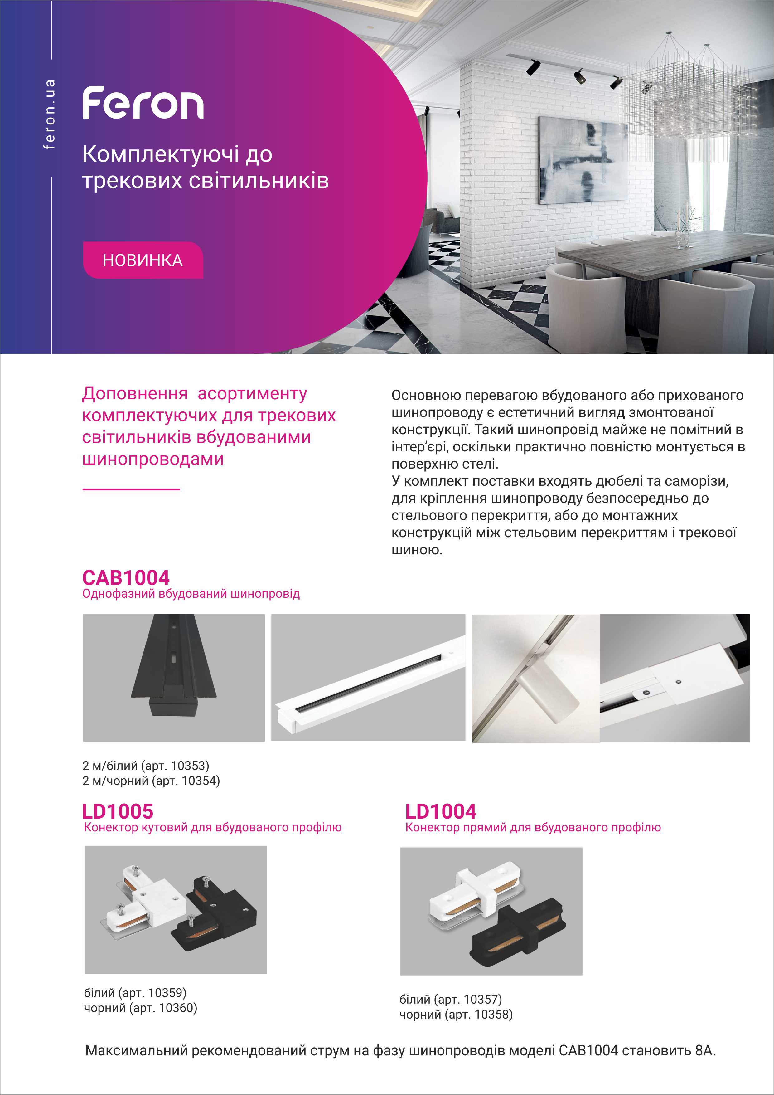 Шинопровід Feron CAB1004 – це ідеальне рішення для тих, хто цінує якість, надійність та естетику в організації освітлення.