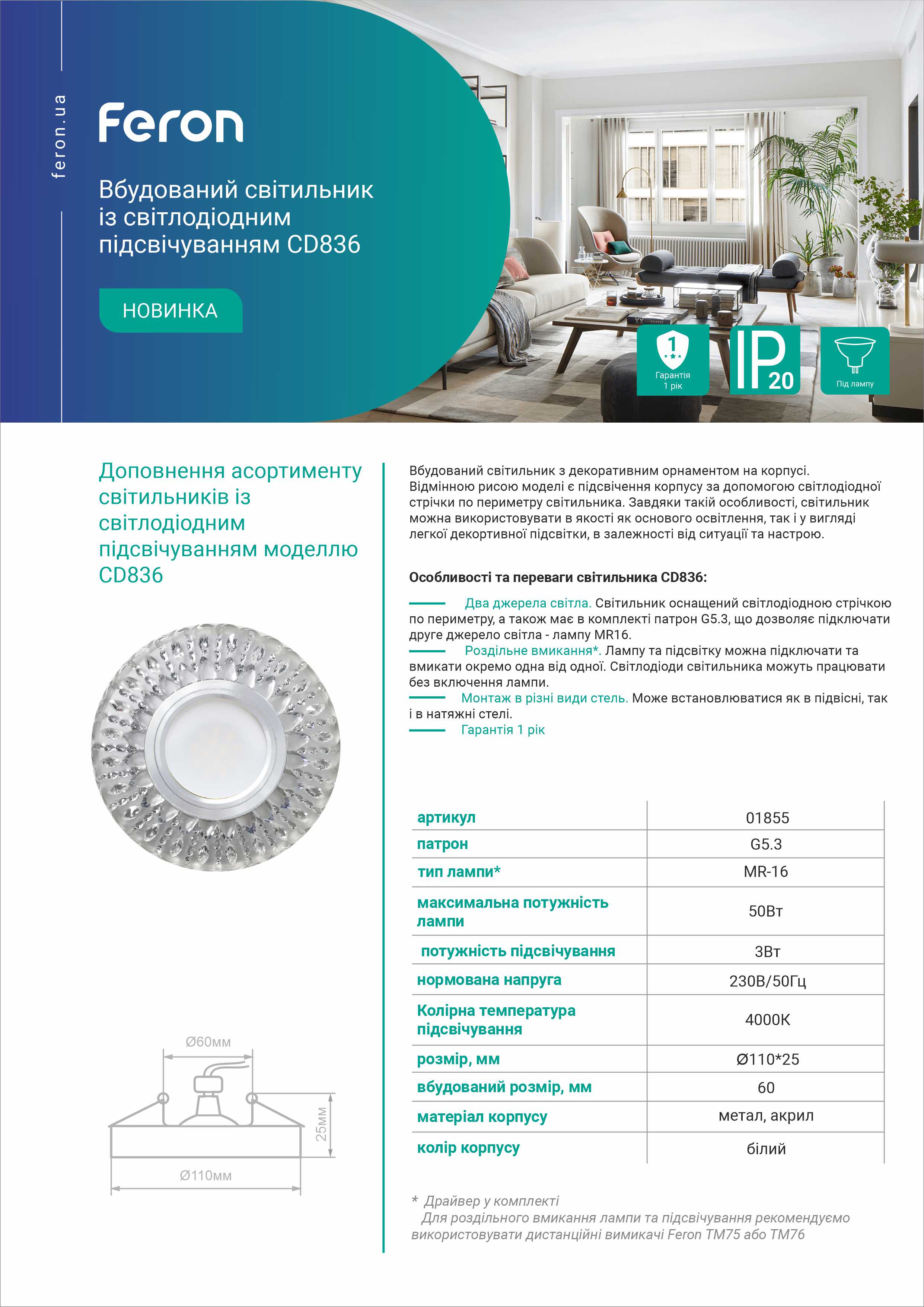 Роздільне вмикання. Лампу та підсвітку можна підключати