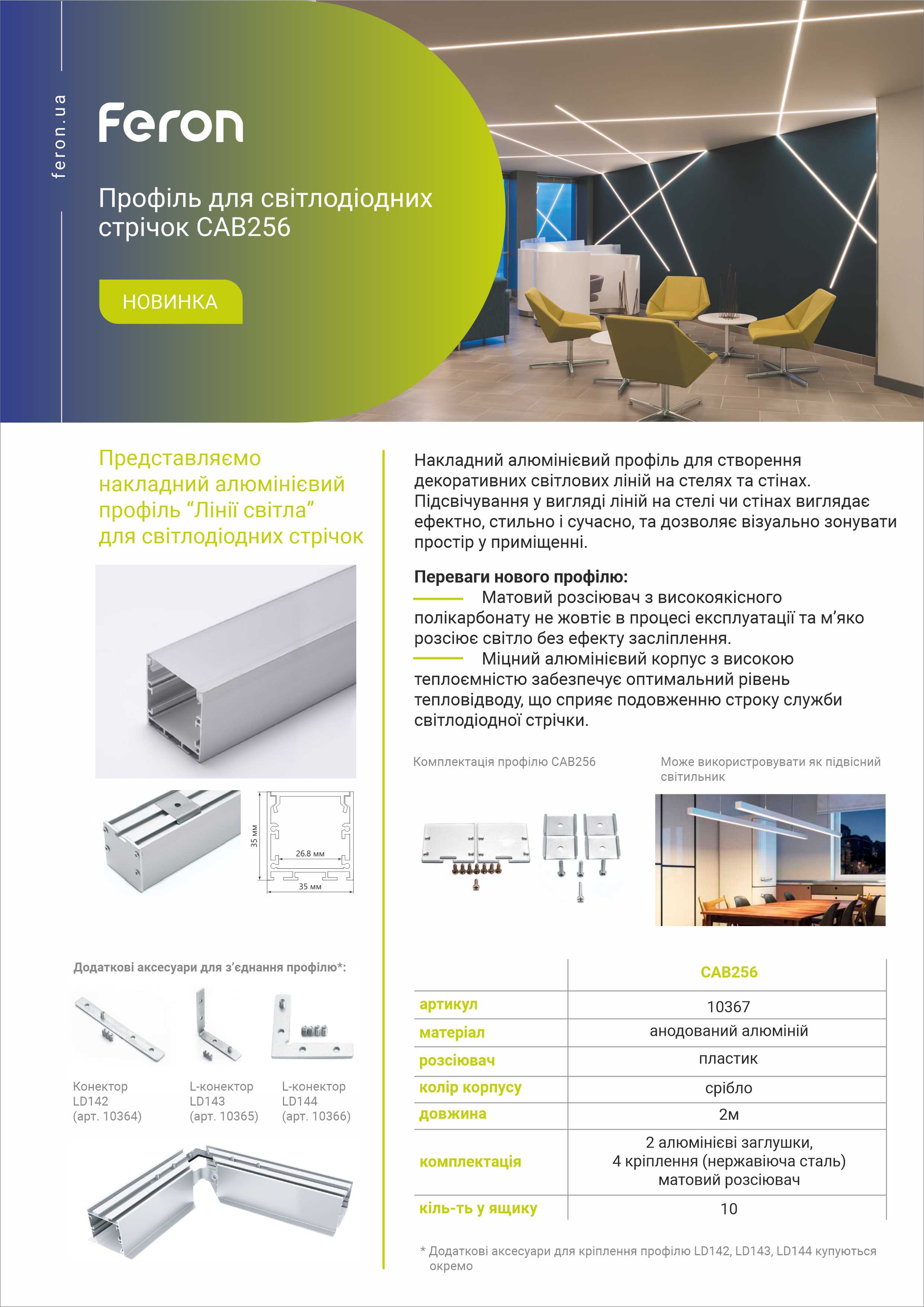 Накладний алюмінієвий профіль для створення декоративних світлових ліній на підвісних стелях будь-якого типу. Підсвічування у вигляді ліній на стелі, стінах чи підлозі виглядає ефектно, стильно і сучасно, та дозволяє візуально зонувати простір у приміщенні. Матовий розсіювач, який йде у комплекті, виготовленний з високоякісного полікарбонату не жовтіє в процесі експлуатації та м’яко розсіює світло без ефекту засліплення.