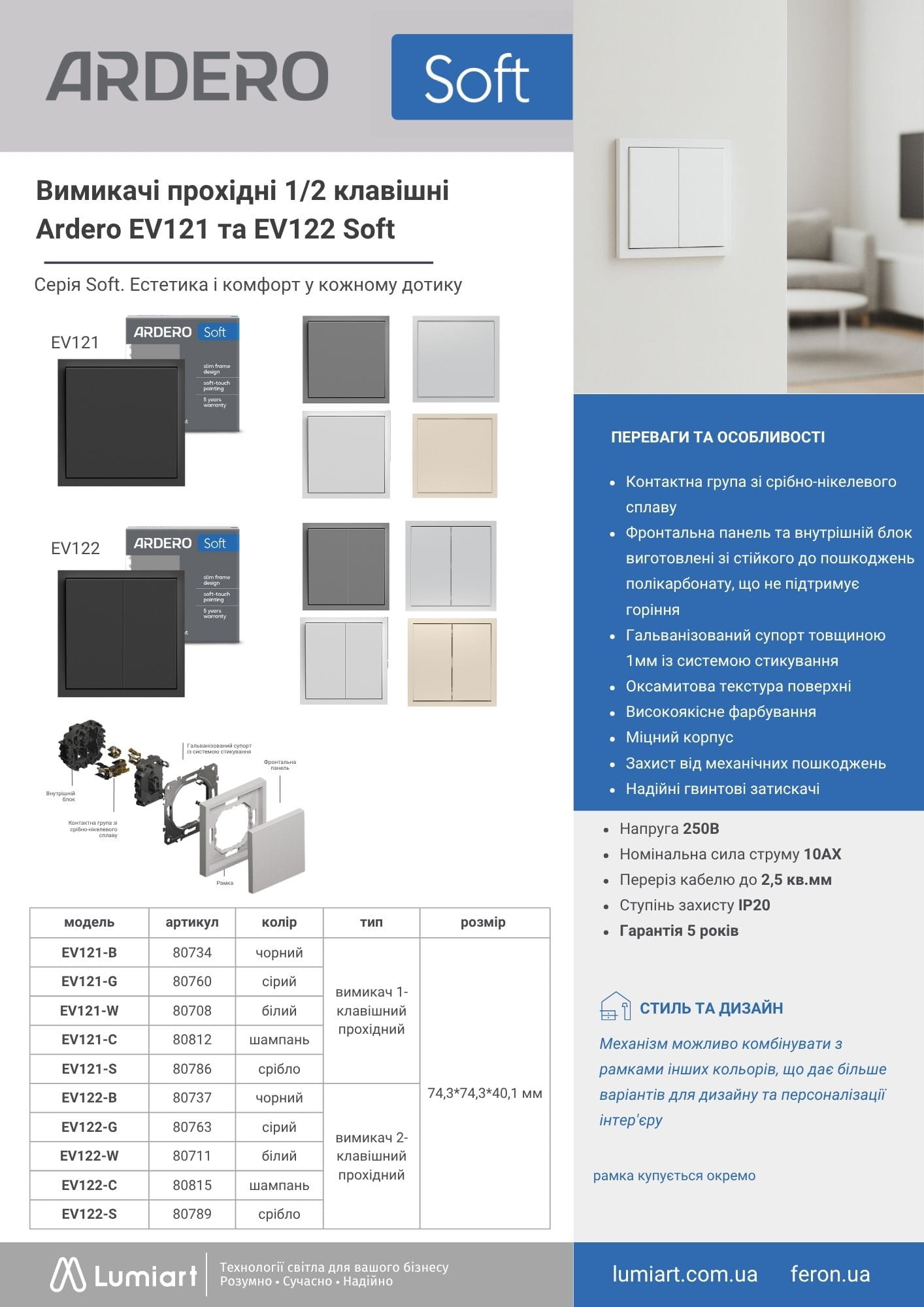 Вимикачі прохідного 1-клавішні Ardero EV121-W Soft