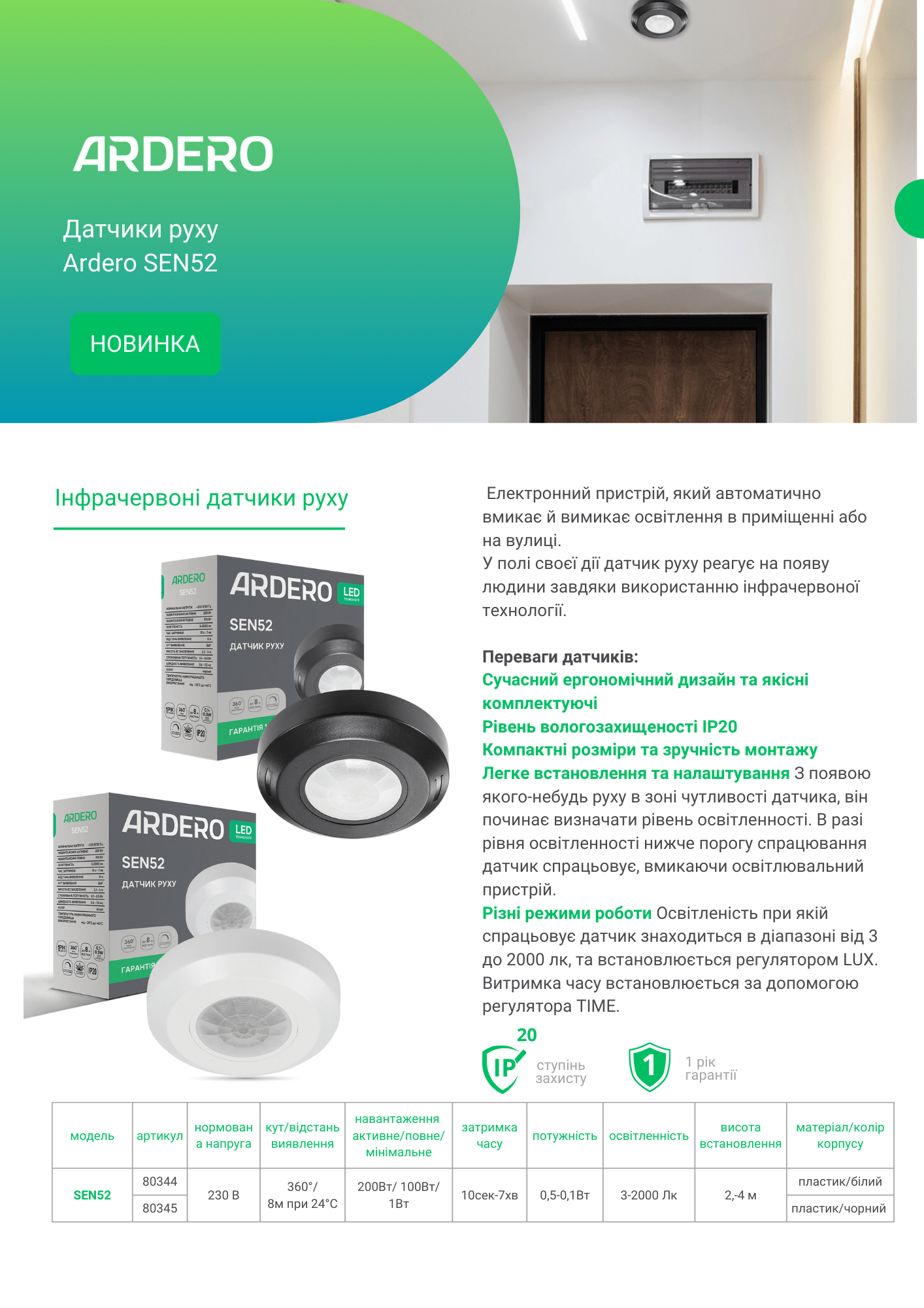 Датчики руху Ardero SEN52