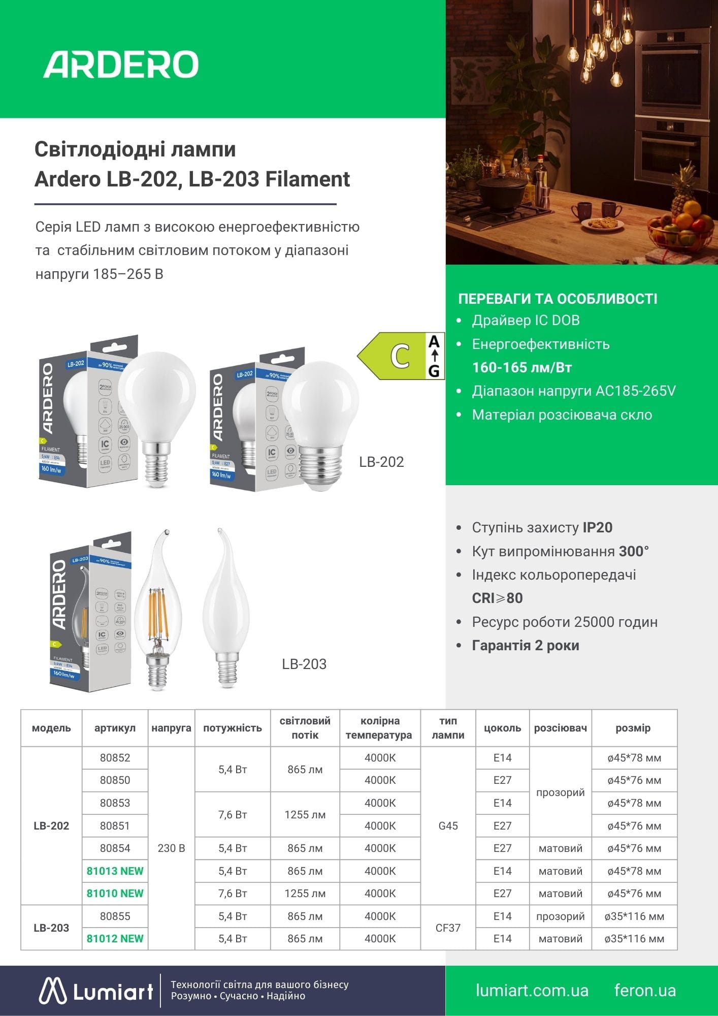 • Енергоефективність 160-165 лм/Вт