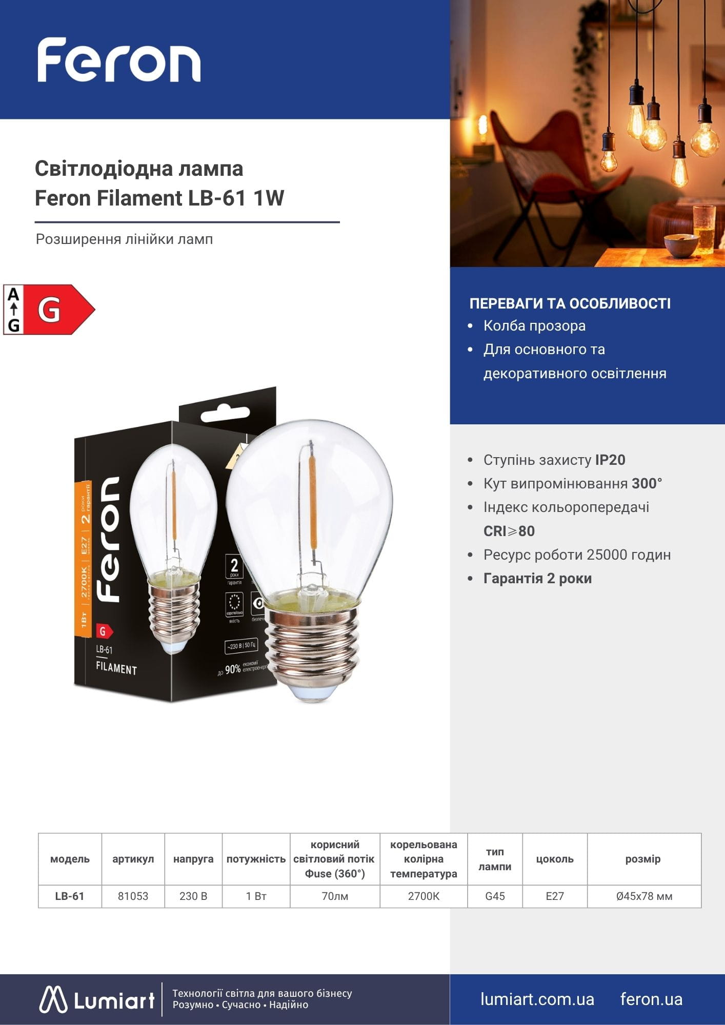 Дозвольте собі насолоджуватися приглушеним теплим світлом та класичним дизайном зі світлодіодною лампою Feron LB-61.