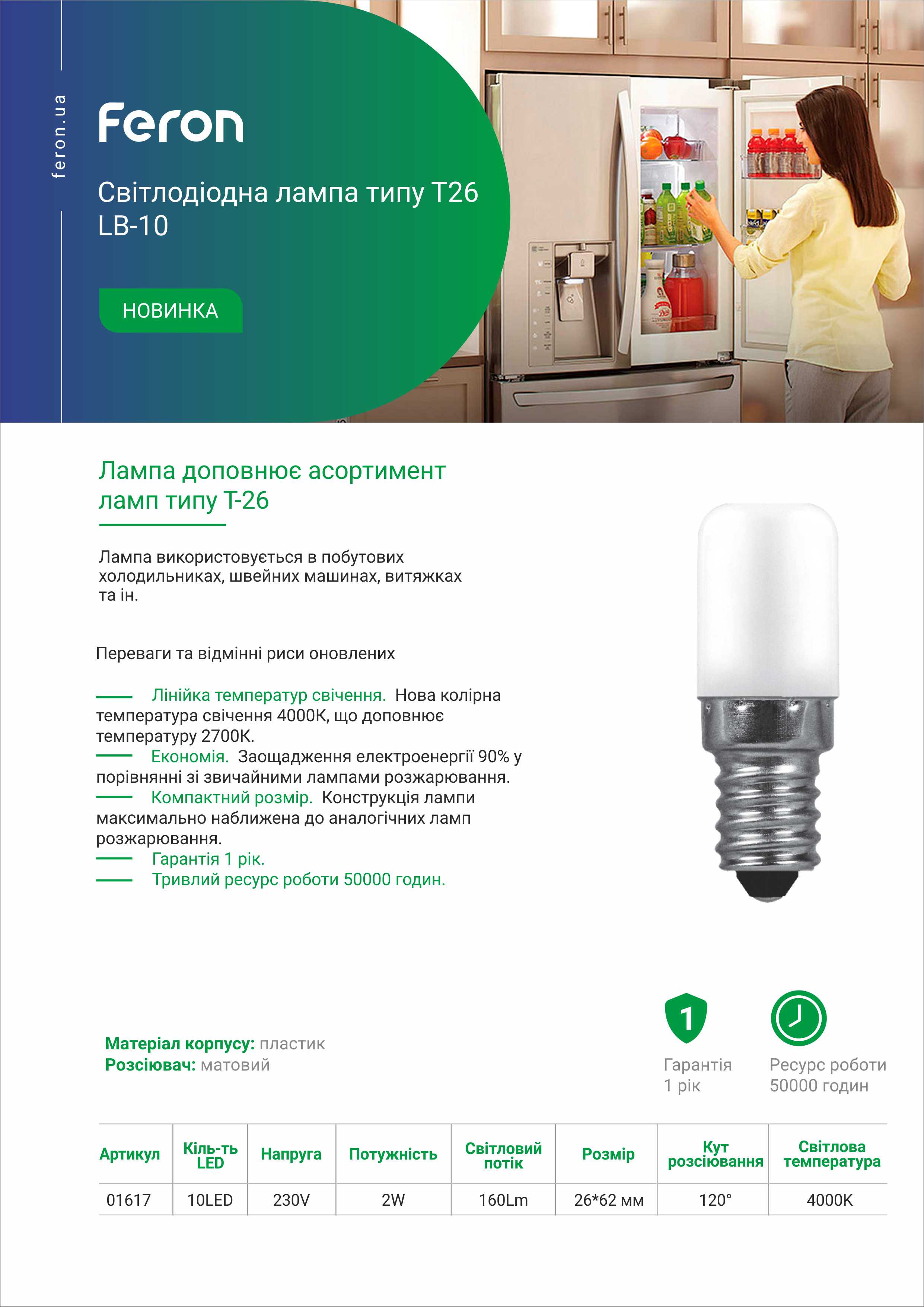 Є надійною заміною звичних ламп розжарювання для холодильників.