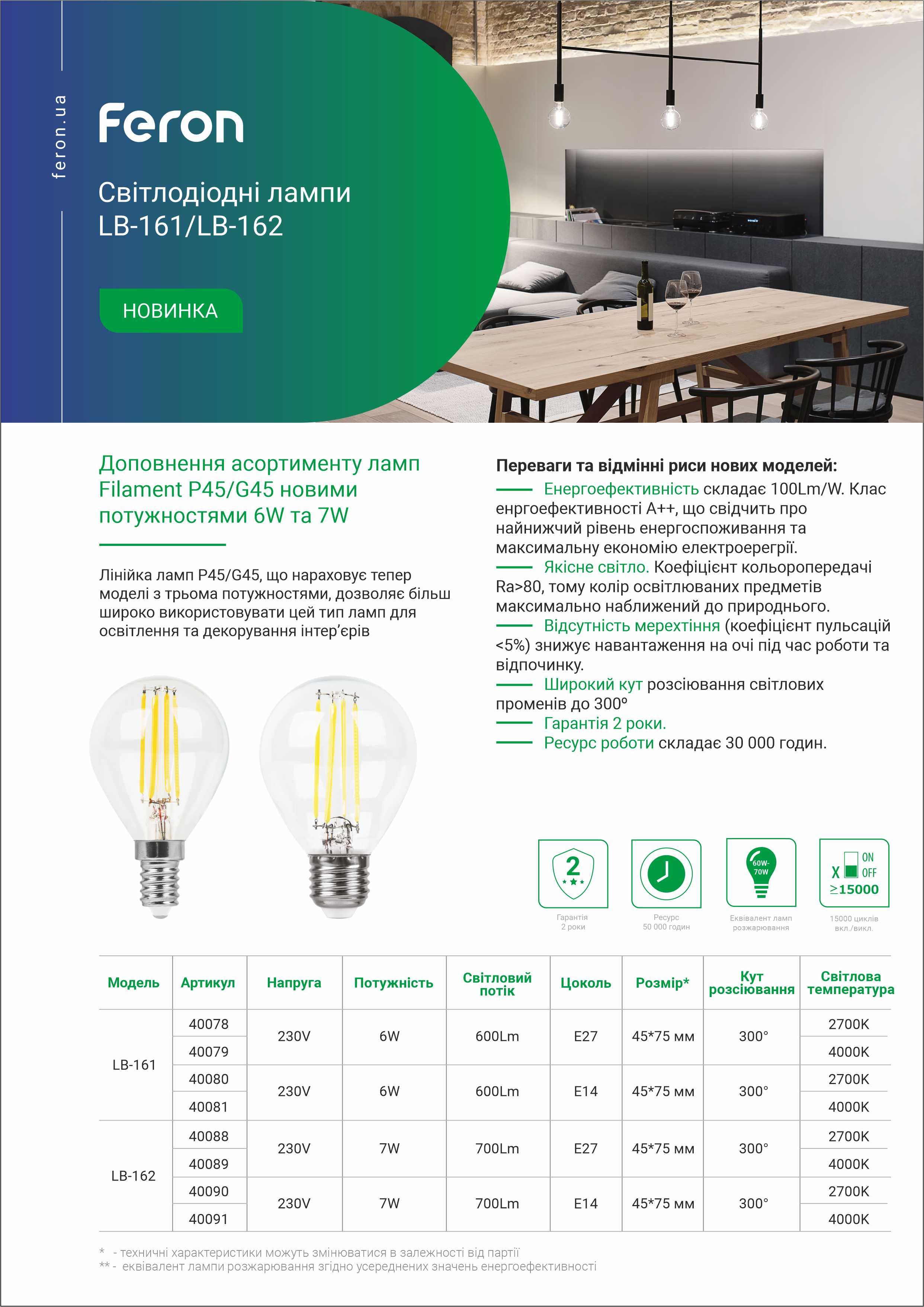 Лампа із серії світлодіодних ламп класичних форм з прозорими колбами, що якнайкраще поєнуються з класичними люстрами та бра. Лампи виготовляються за новітньою технологією світлодіодних ниток (LED Filament), що забезпечує їм високі показники енергоефективності 100Lm/W. Вона представляє собою тонку довгу підложку, на якій встановлені світлодіодні кристали дуже маленького розміру, вкриті шаром люмінофору. Завдяки такій технології та конструкції ламп, вони по зовнішньому вигляду та характеристикам свічення максимально близькі до ламп розжарювання. Адже саме лампи розжарювання створюють неповторну гру світла на гранях кристалів класичних люстр. Коефіцієнт кольоропередачі Rа>80, тому колір освітлювальних предметів максимально наближений до природнього.