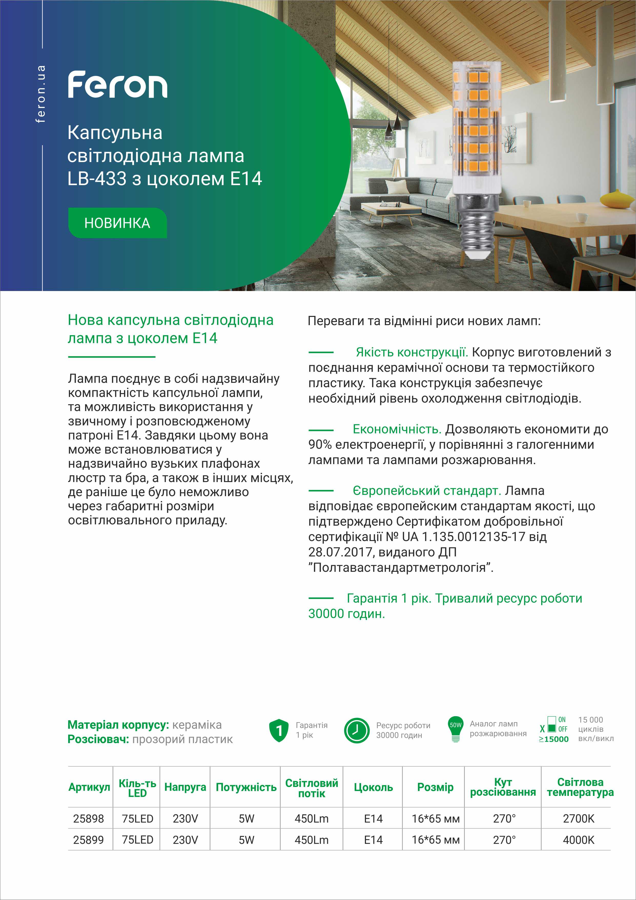 Має довготривалий ресурс роботи, що становить 30 000 годин.