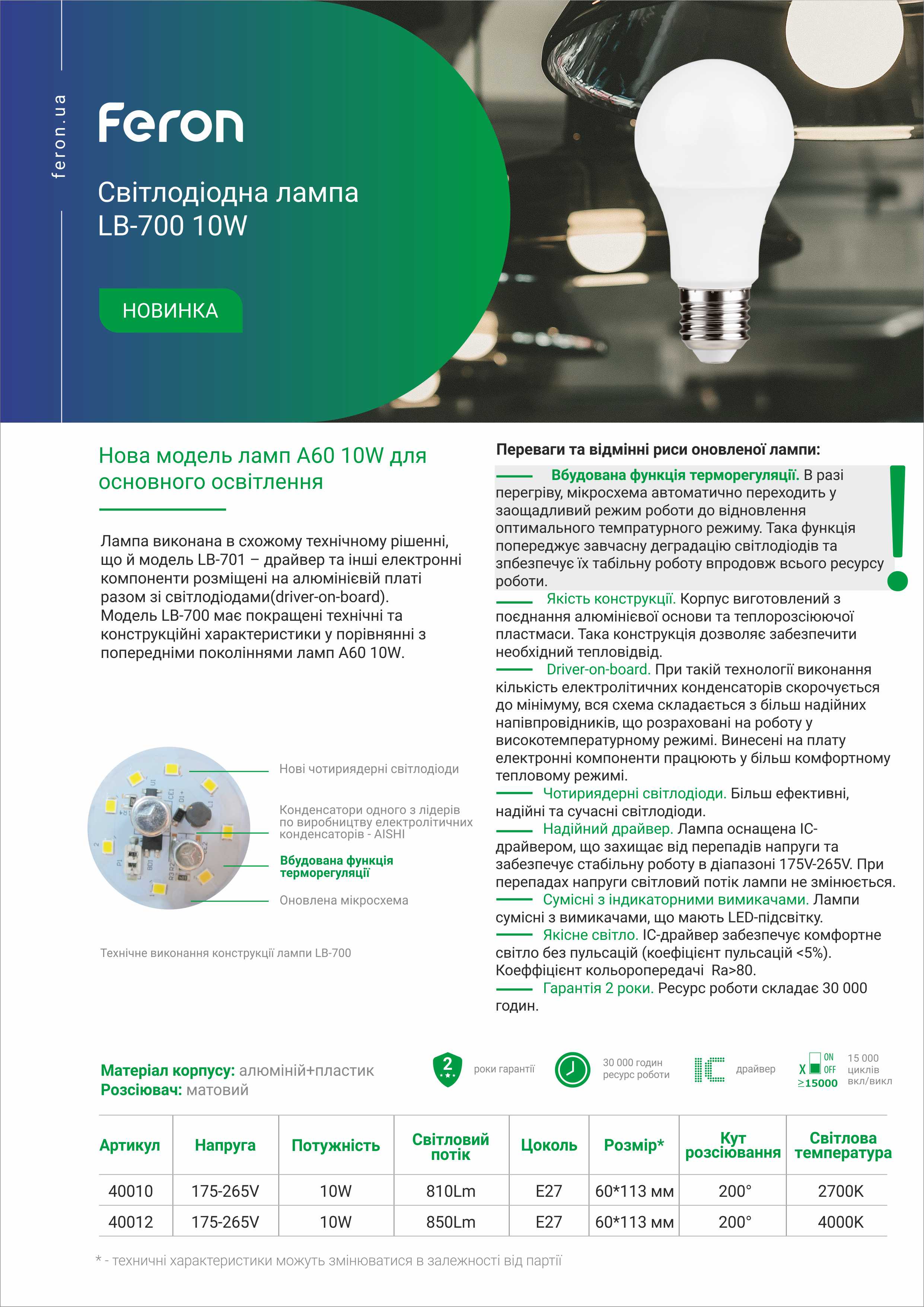 Тепловий режим світлодіодів повністю відповідає конструкції корпусу, що забезпечує стабільну роботу протягом тривалого часу. Крім того, вони оснащені IC-драйверами, які захищають від перепадів напруги, та відсутність пульсацій, що забезпечує комфортний режим роботи.