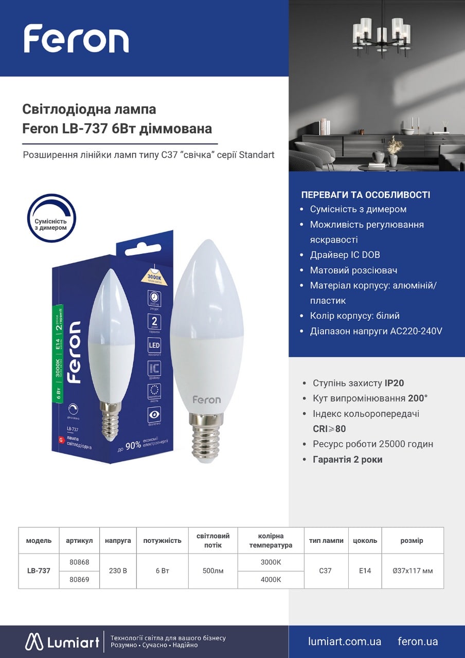 Світлодіодна лампа Feron LB-737 6Вт діммована