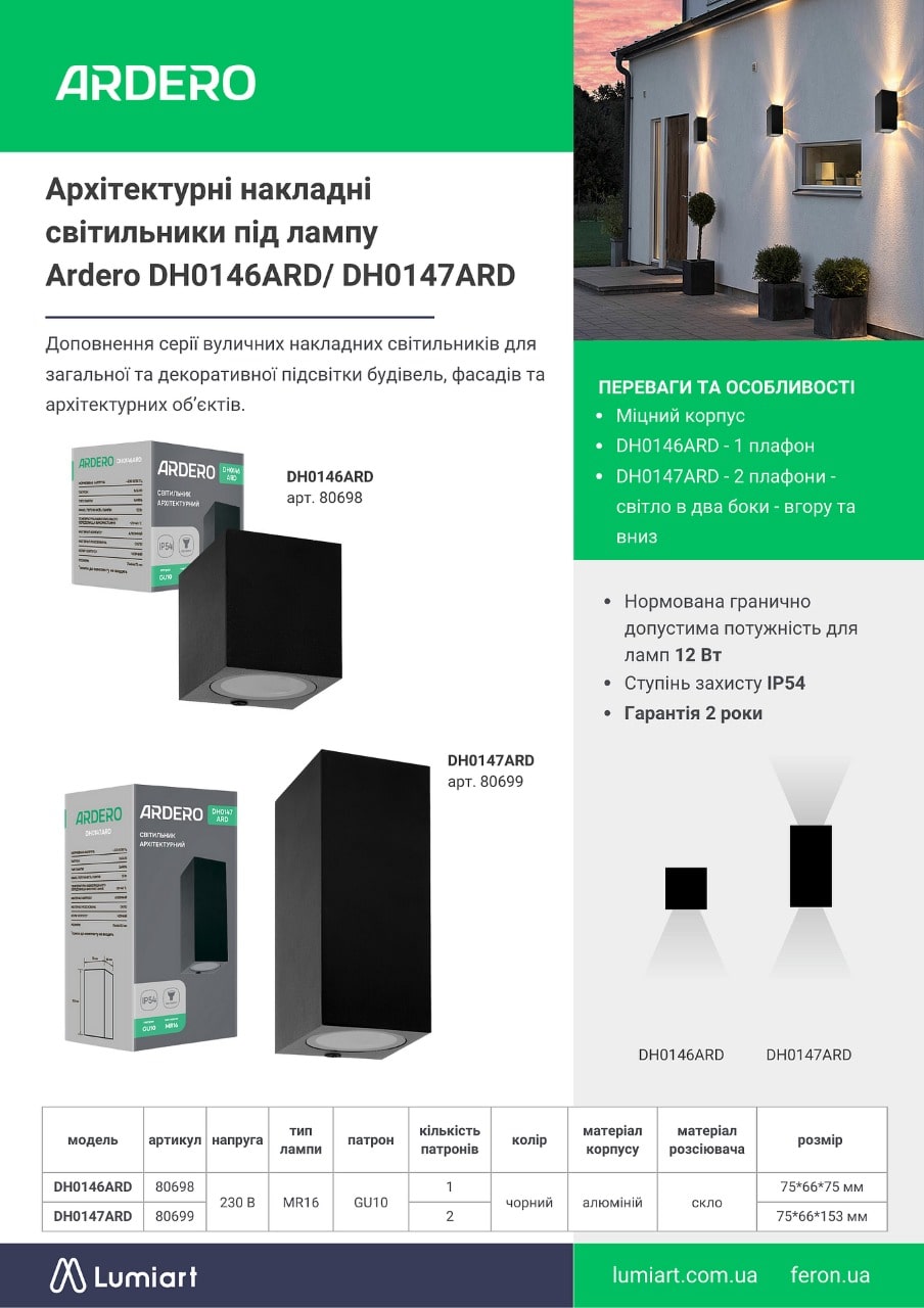Архітектурні накладні світильники під лампу Ardero DH0146ARD