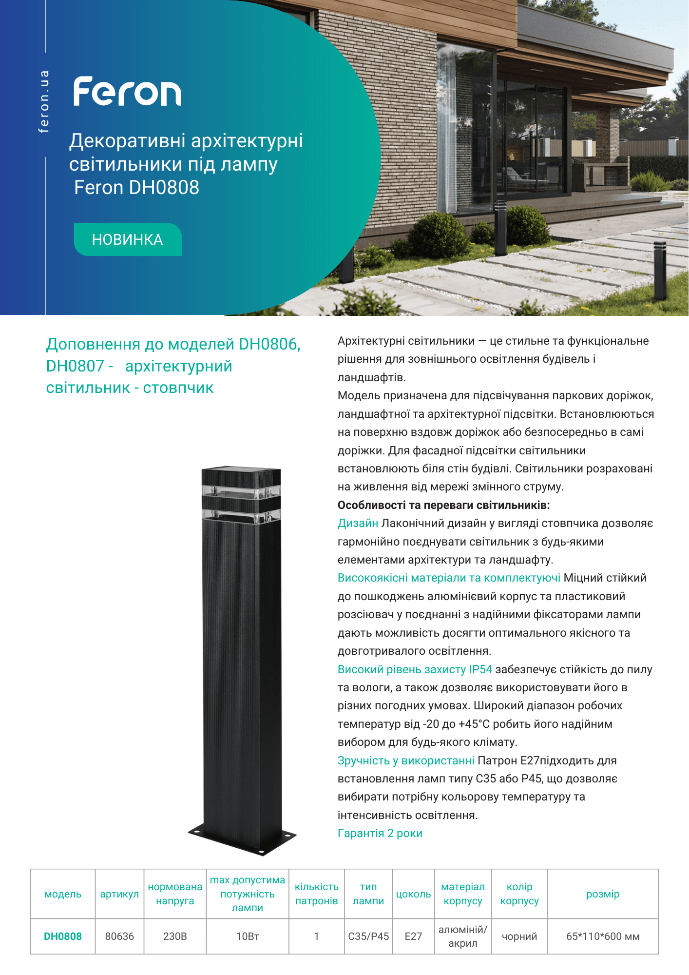 Декоративні архітектурні світильники під лампу Feron DH0808