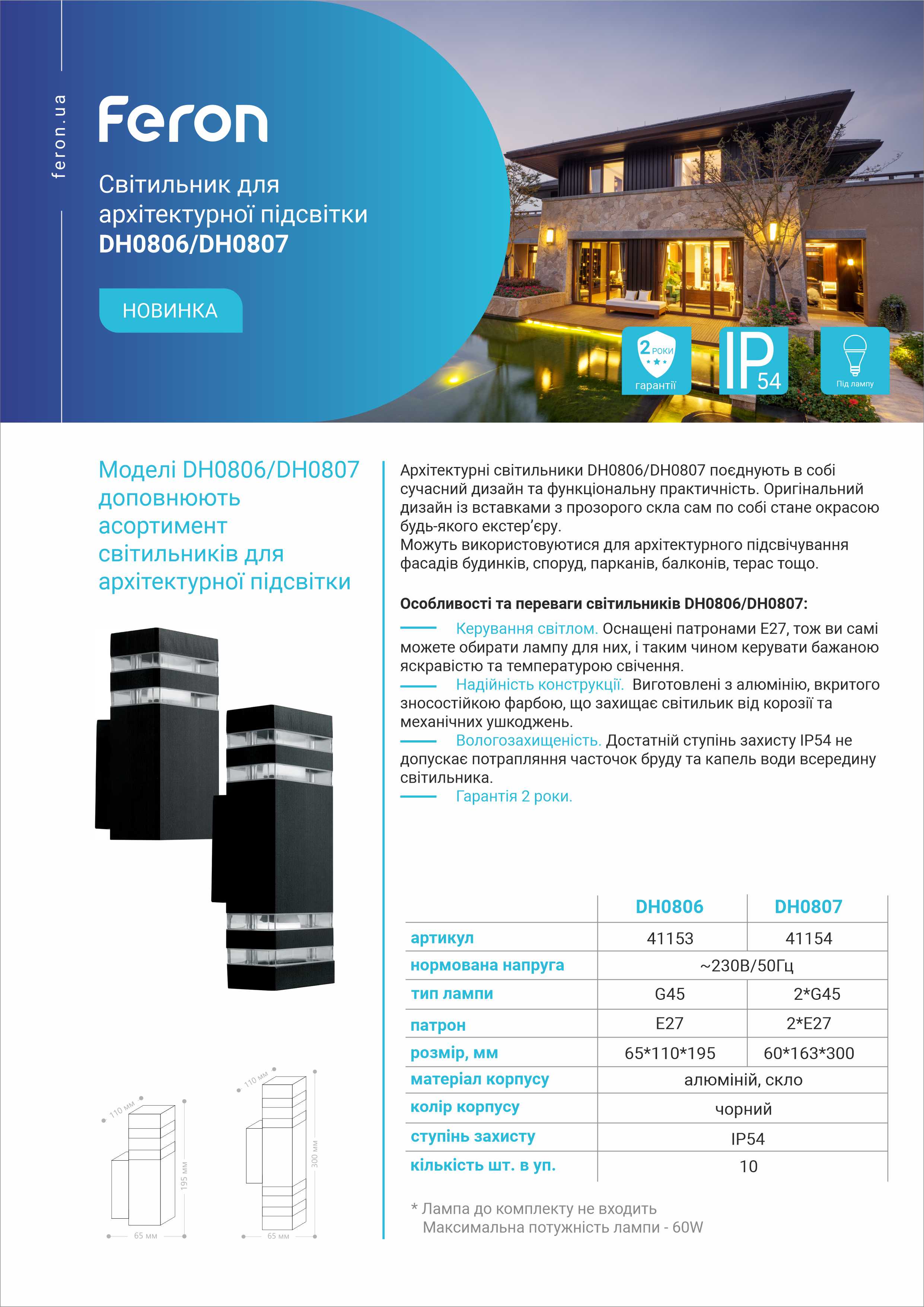 Архітектурний світильник Feron DH0806 — це естетичне, функціональне та надійне рішення для освітлення, що підкреслить красу будь-якого архітектурного об'єкта та забезпечить тривале та ефективне освітлення в будь-яких умовах.