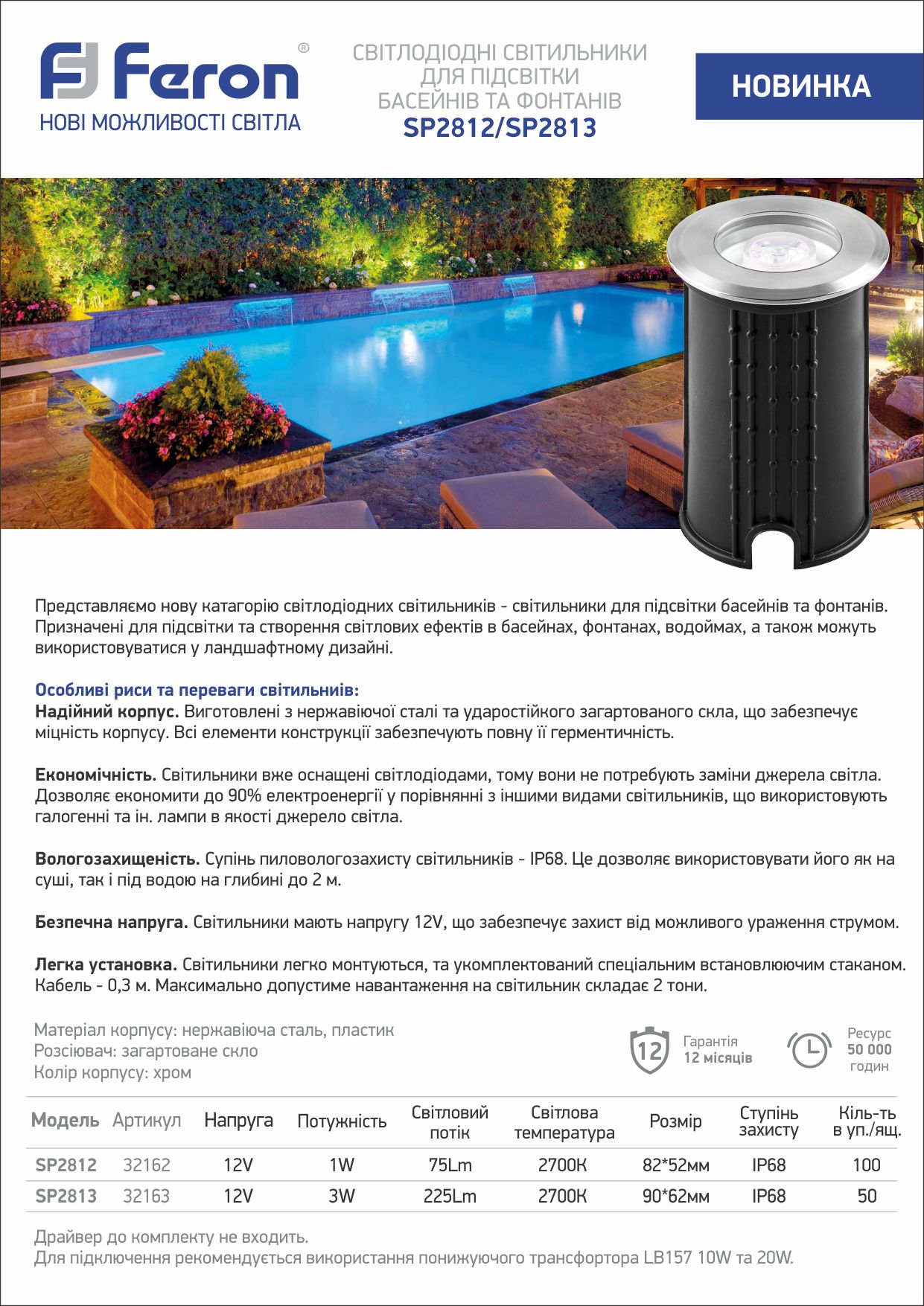 | Ступінь захисту | IP68 |