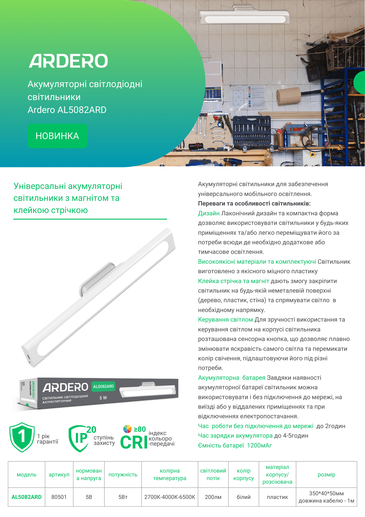 Акумуляторні світлодіодні світильники Ardero AL5082ARD
