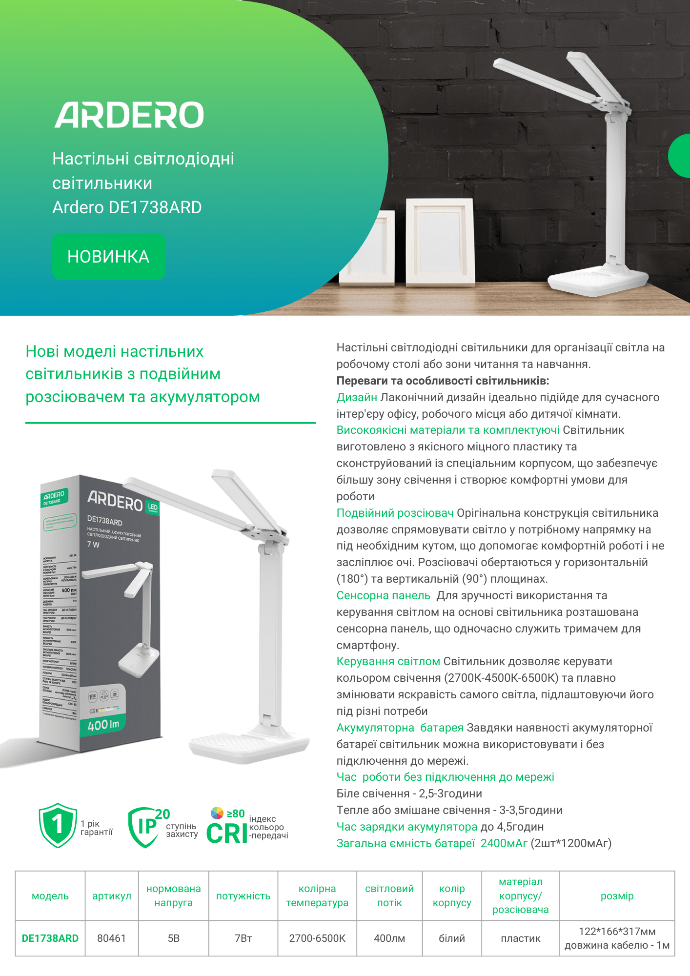Настільні світлодіодні світильники Ardero DE1738ARD