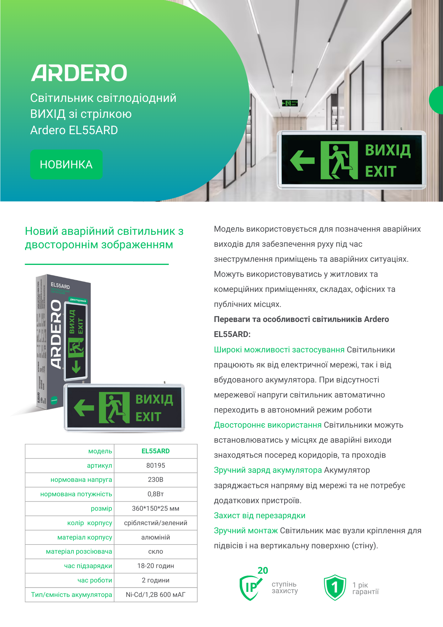 Новий аварійний світильник з двостороннім зображенням