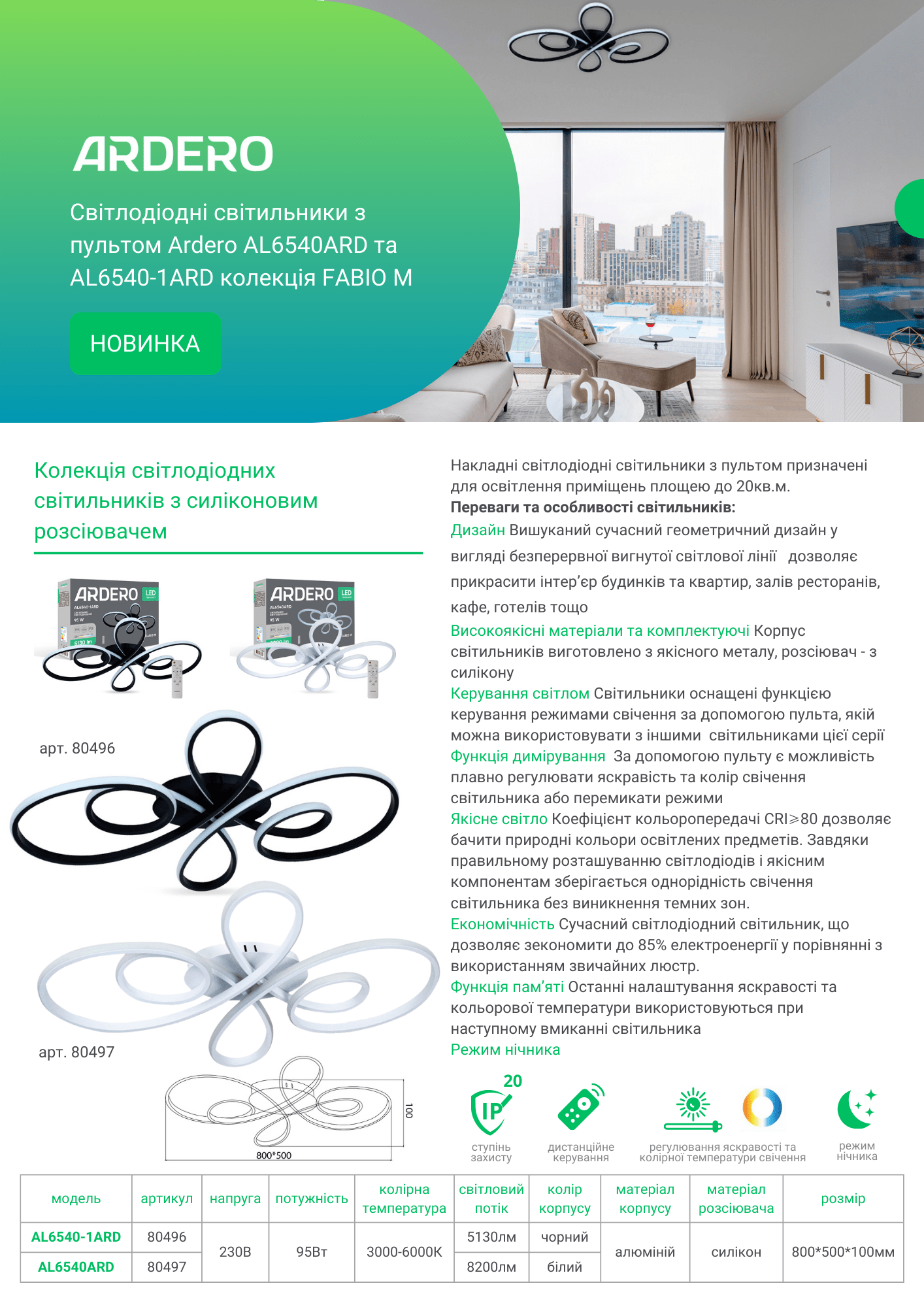 Світлодіодні світильники з пультом Ardero AL6540ARD колекція FABIO М