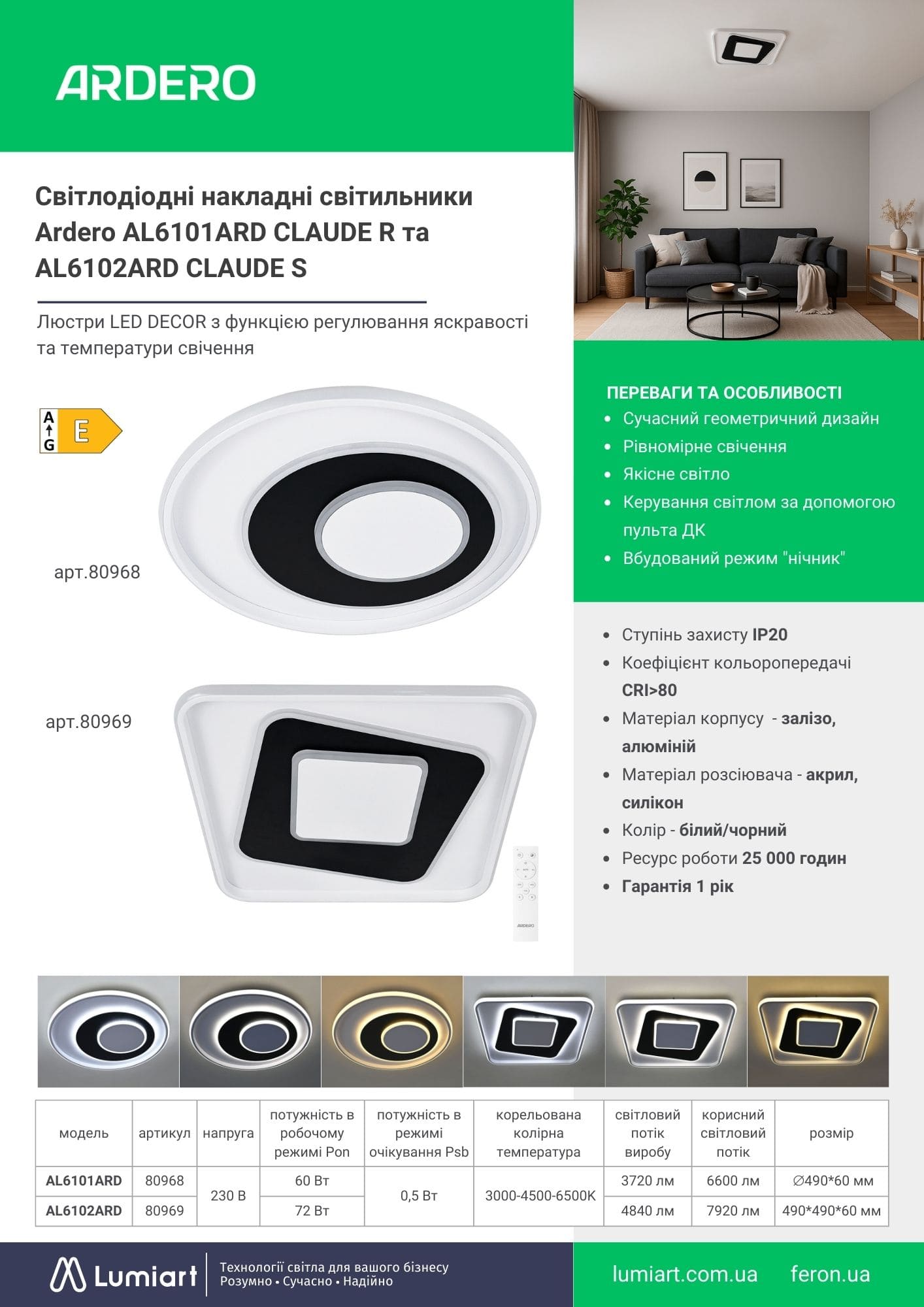 Світлодіодні накладні світильники Ardero AL6101ARD CLAUDE R та AL6102ARD CLAUDE S