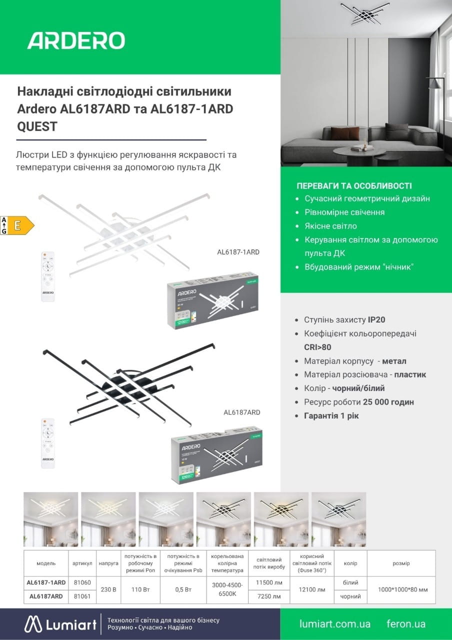 Потрібна сучасна LED люстра з пультом, яка поєднує стиль, функціональність і комфортне освітлення? Накладні світлодіодні світильники Ardero QUEST AL6187ARD та AL6187-1ARD — це універсальне рішення для освітлення квартири, будинку, офісу або комерційного простору.