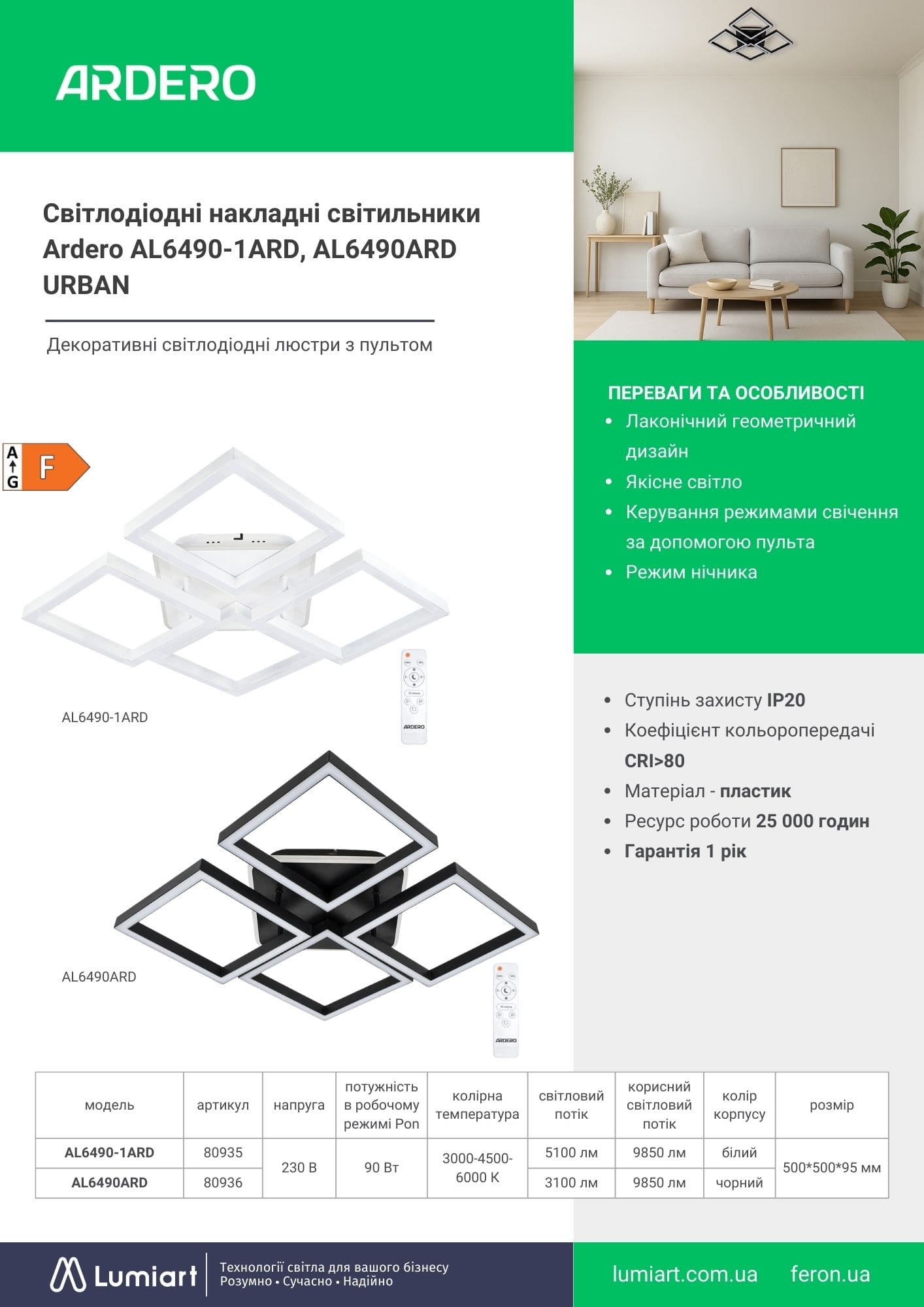 Світлодіодні накладні світильники Ardero AL6490ARD, AL6490ARD-1ARD