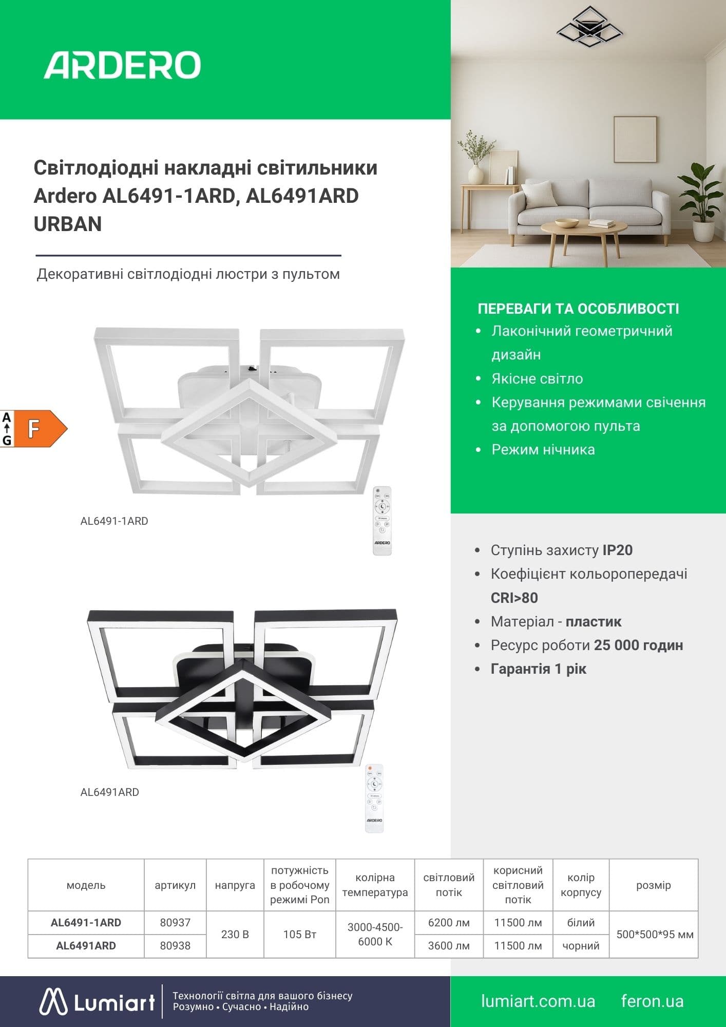 Світлодіодні накладні світильники Ardero AL6491ARD, AL6491ARD-1ARD