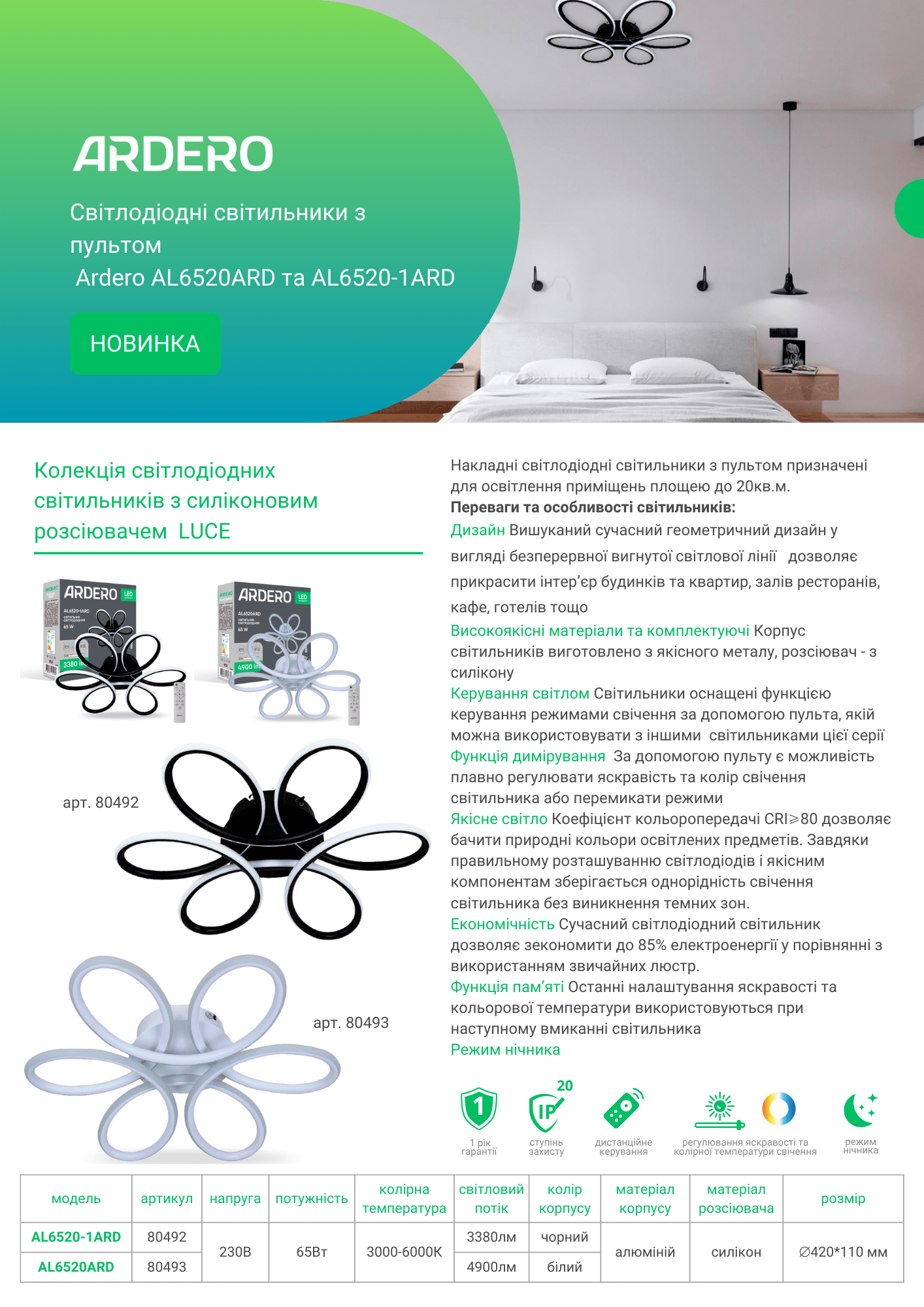 Світлодіодний світильник з пультом Ardero AL6520-1ARD LUCE