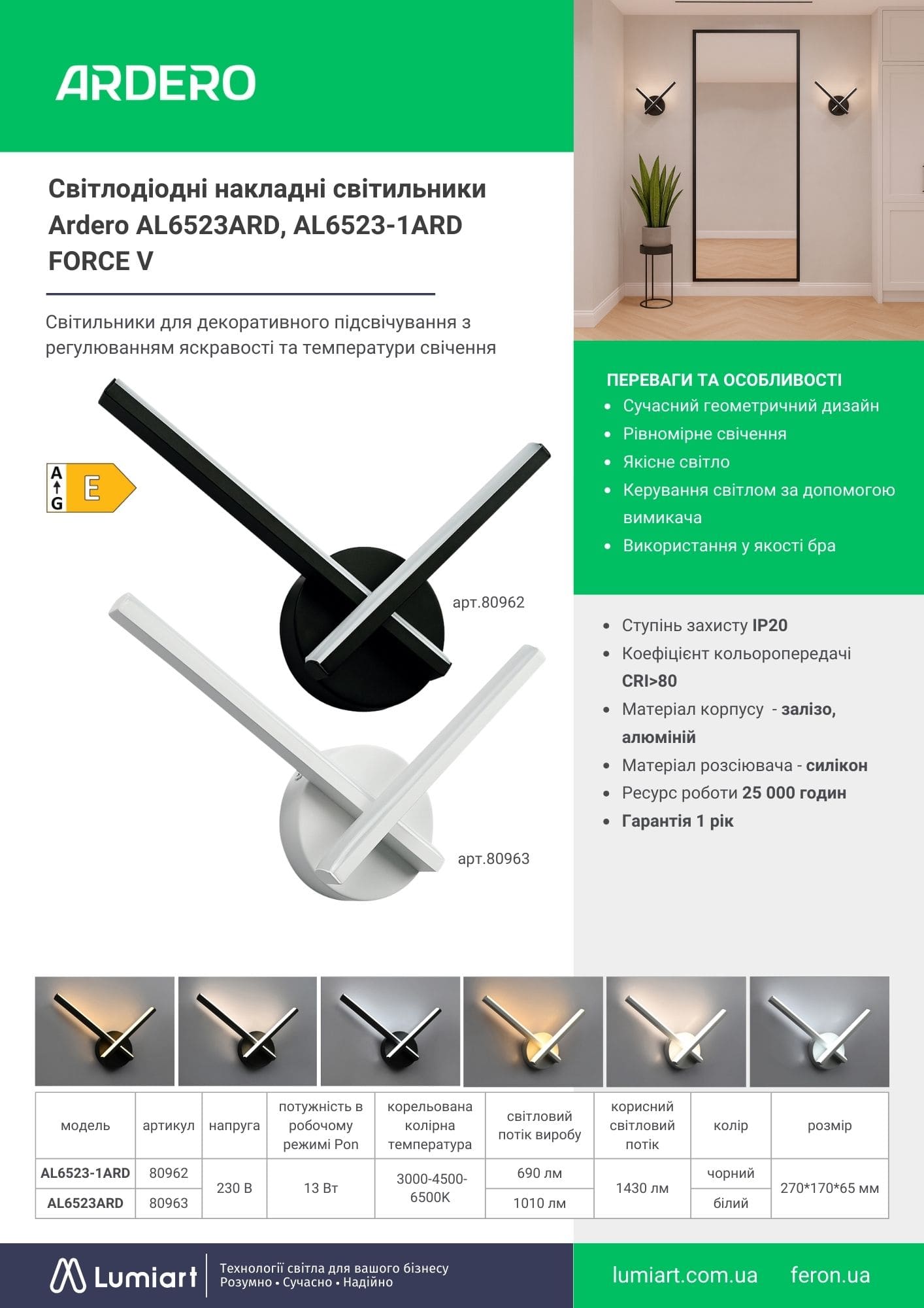 Світлодіодні накладні світильники Ardero AL6523ARD, AL6523-1ARD FORCE V