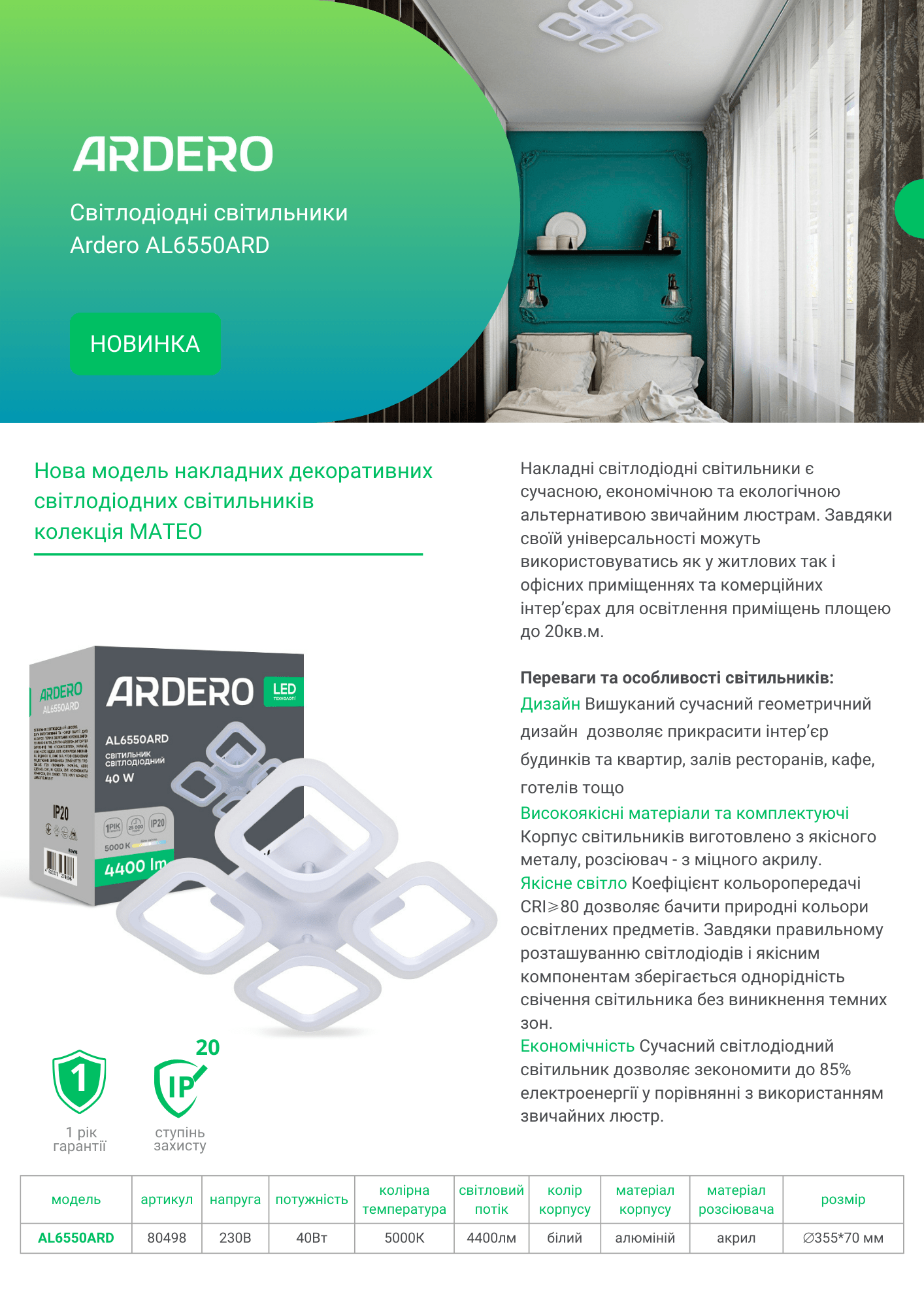 Світлодіодні світильники Ardero AL6550ARD MATEO