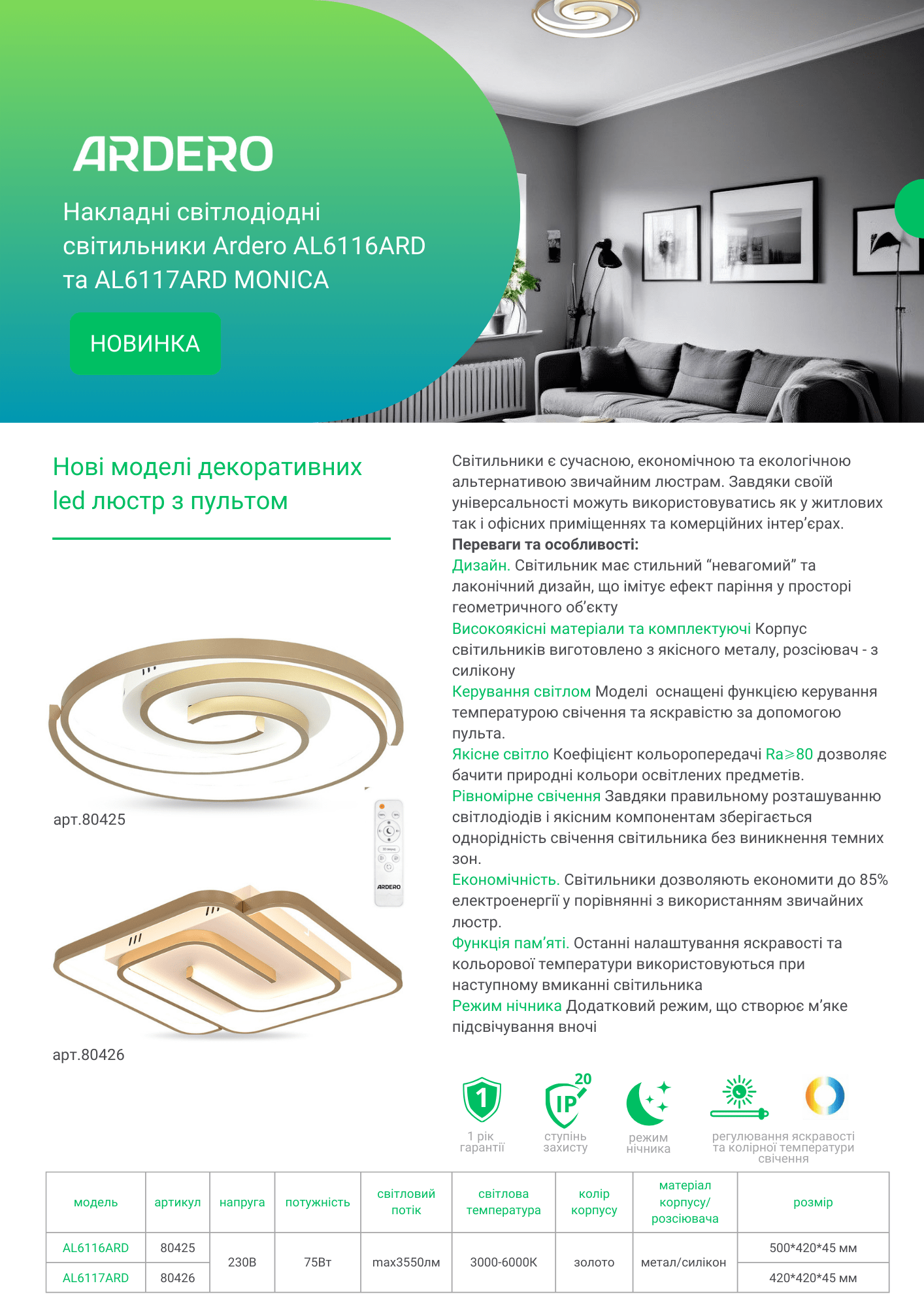 Накладні світлодіодні світильники Ardero AL6116-1ARD MONICA