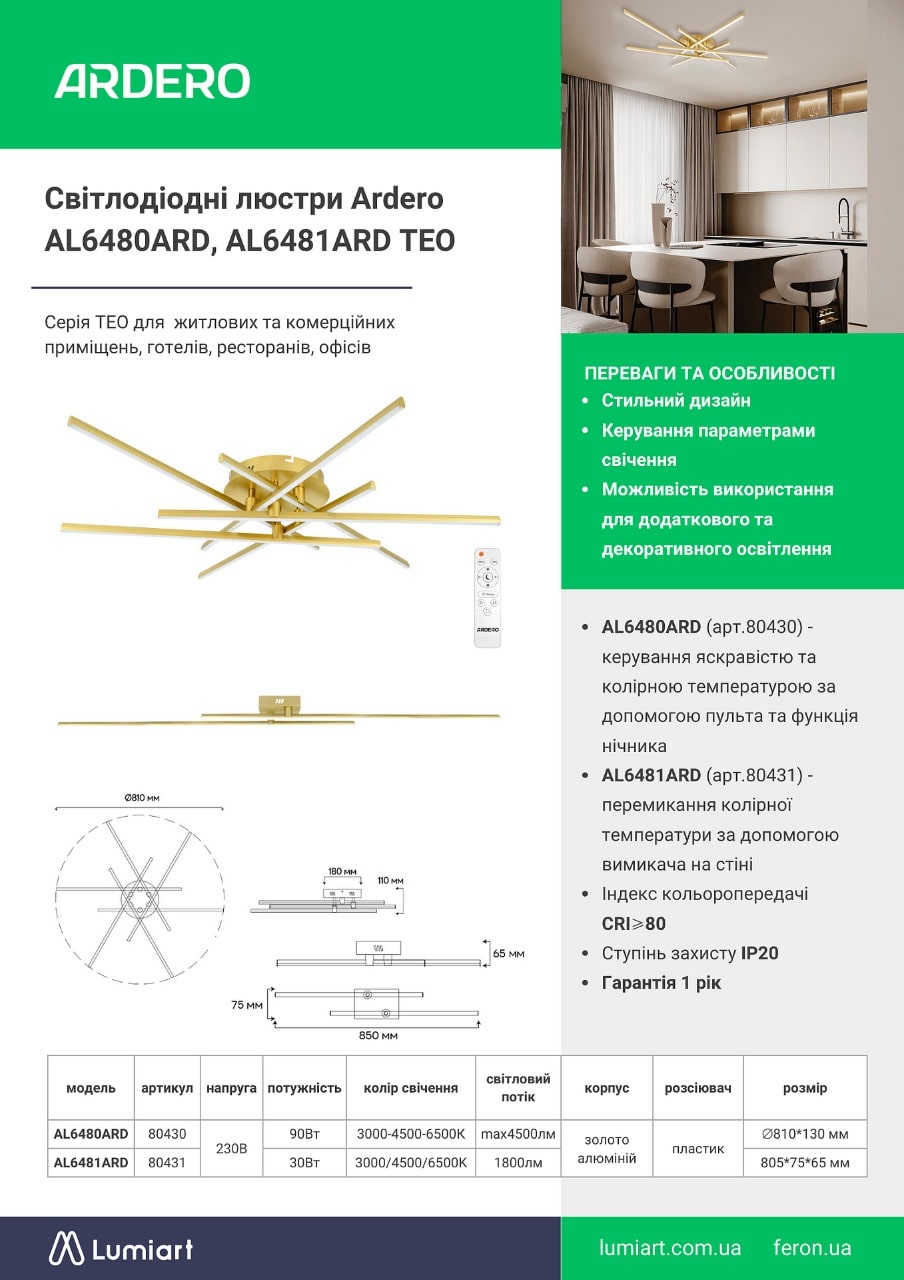 Світлодіодні люстри Ardero AL6480ARD, AL6481ARD TEO
