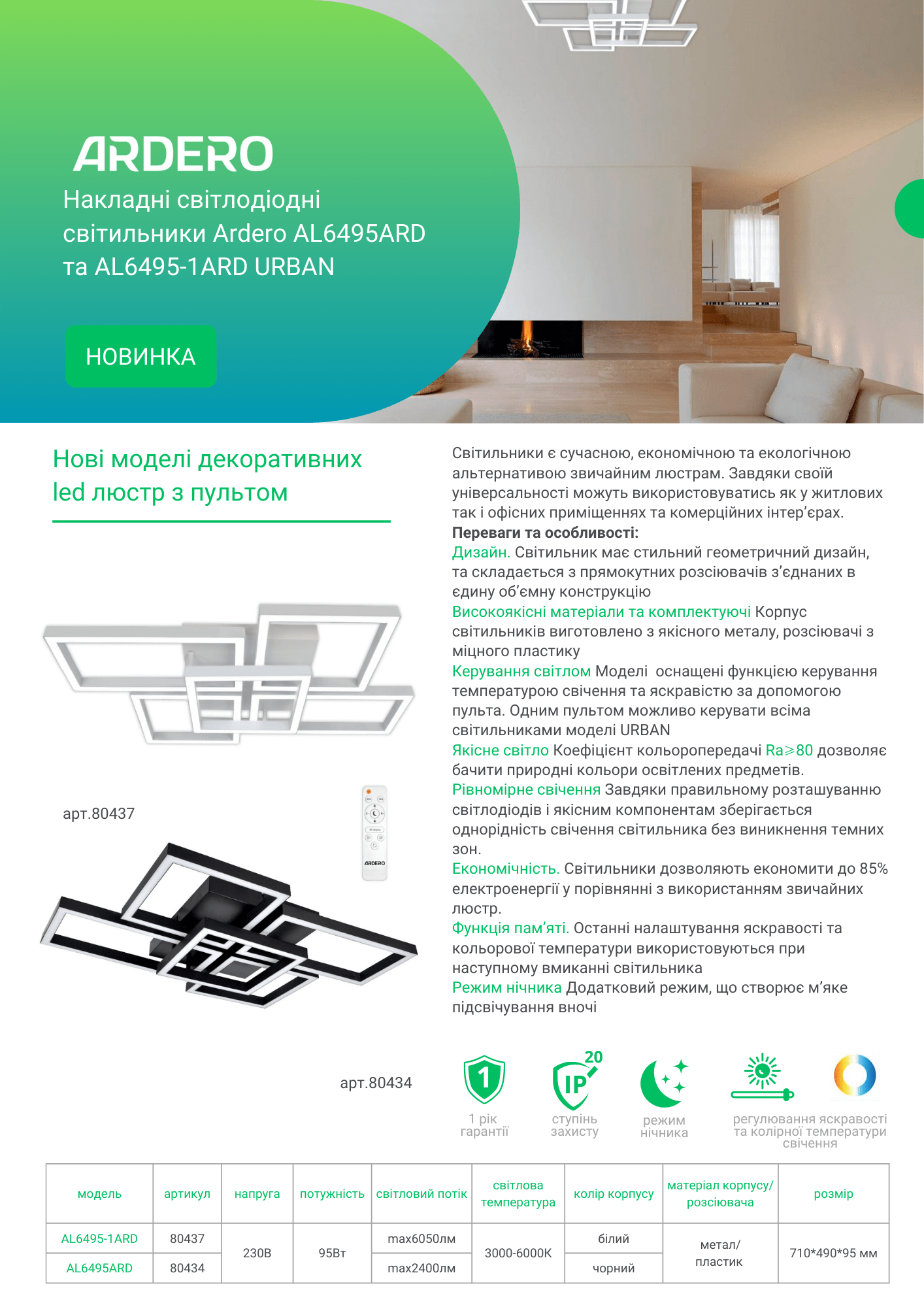 Накладні світлодіодні світильники Ardero AL6495ARD URBAN