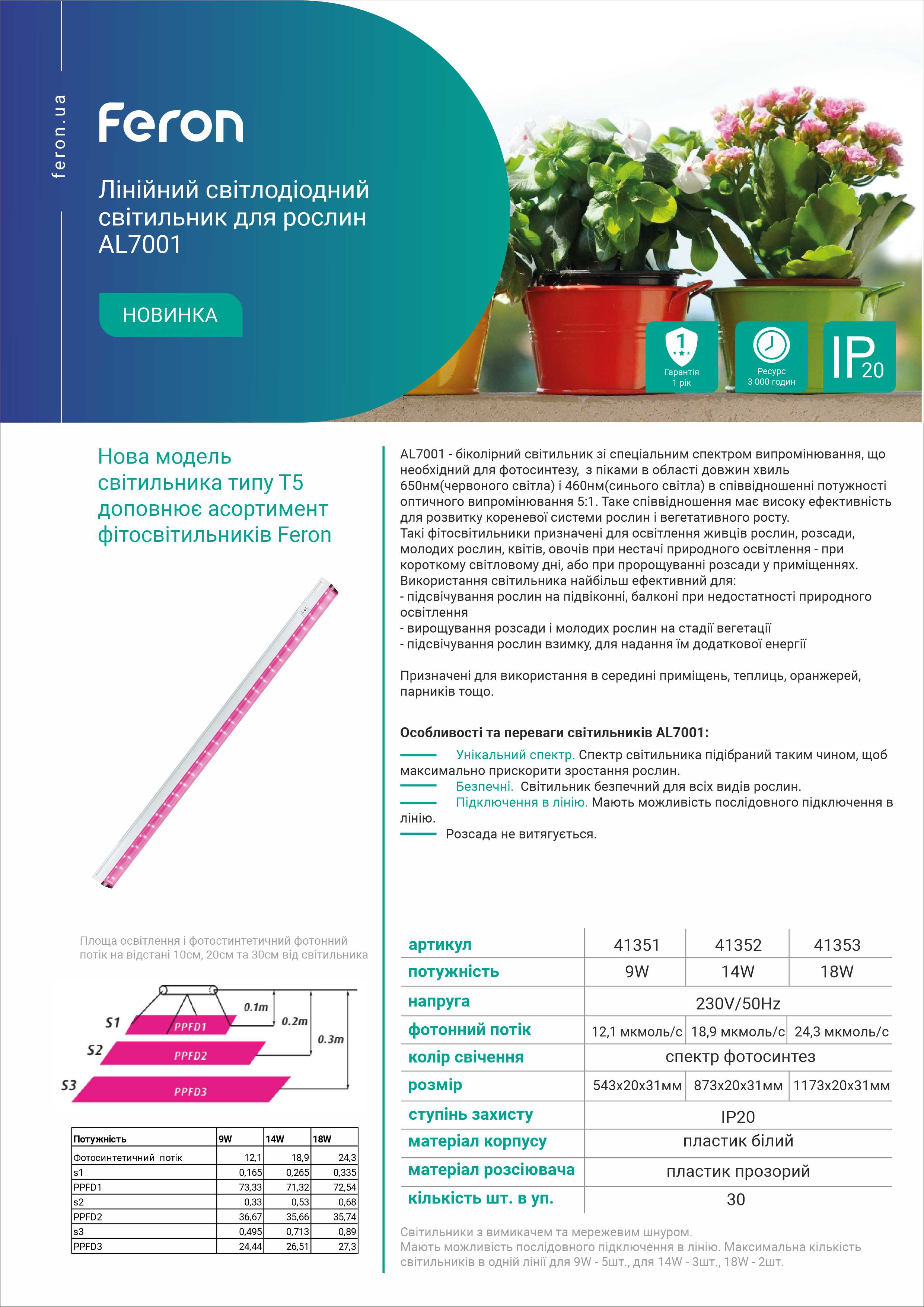 Лінійний світлодіодний світильник для рослин AL7001 – біколірний світильник зі спеціальним спектром випромінювання, що