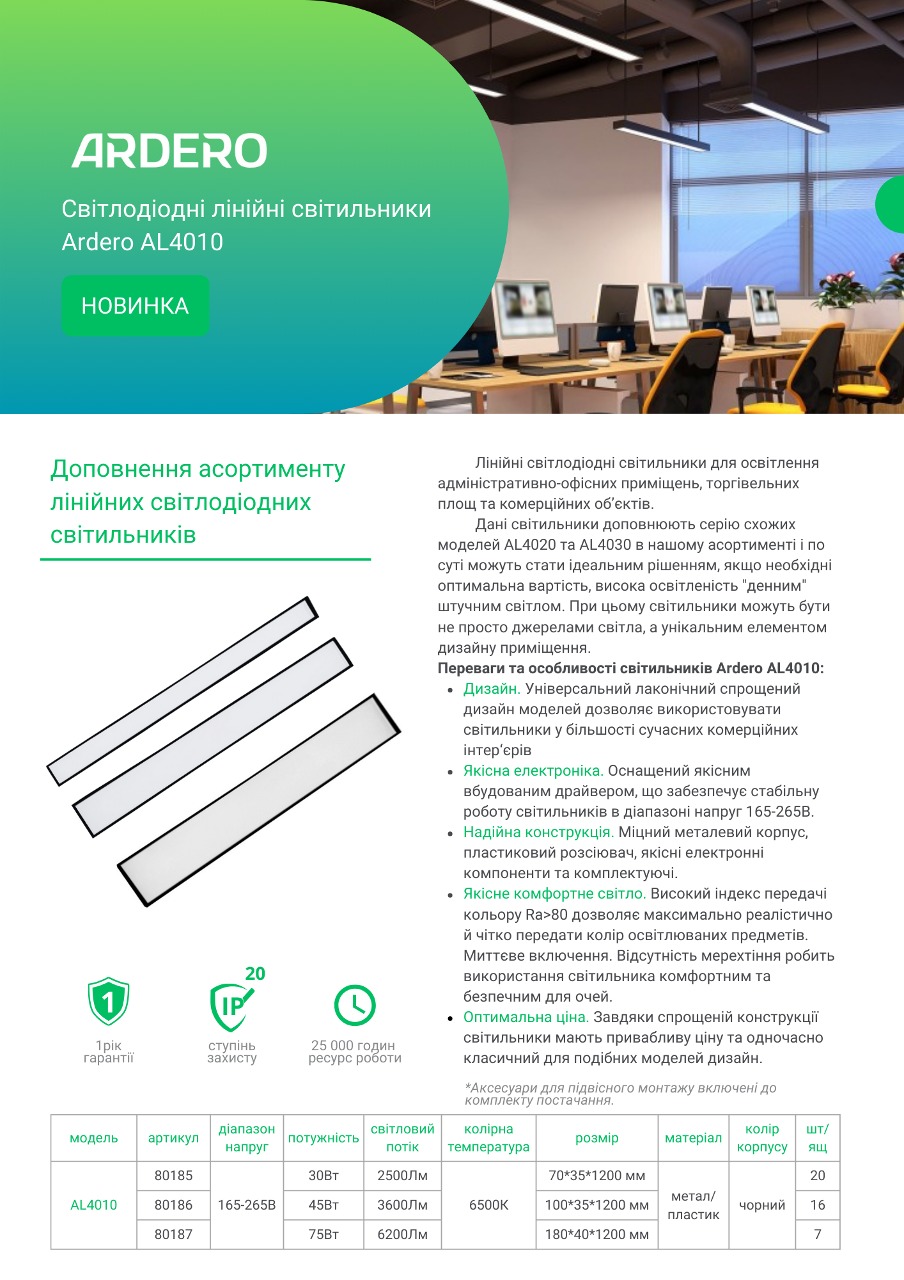 Дані світильники доповнюють серію схожих моделей AL4020 та AL4030 в нашому асортименті і по суті можуть стати ідеальним рішенням, якщо необхідні оптимальна вартість, висока освітленість "денним" штучним світлом. При цьому світильники можуть бути не просто джерелами світла, а унікальним елементом дизайну приміщення.
