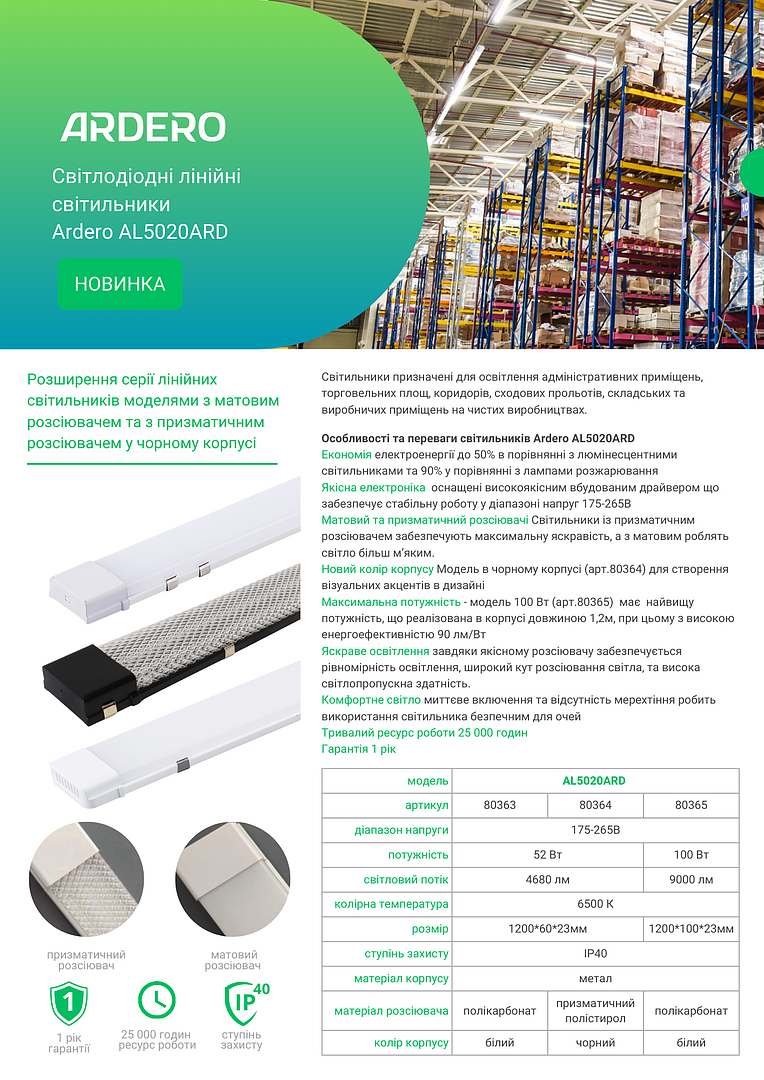 Максимальна потужність 100Вт - найвища, що реалізована в корпусі довжиною 1,2м, при цьому з високою енергоефективністю.