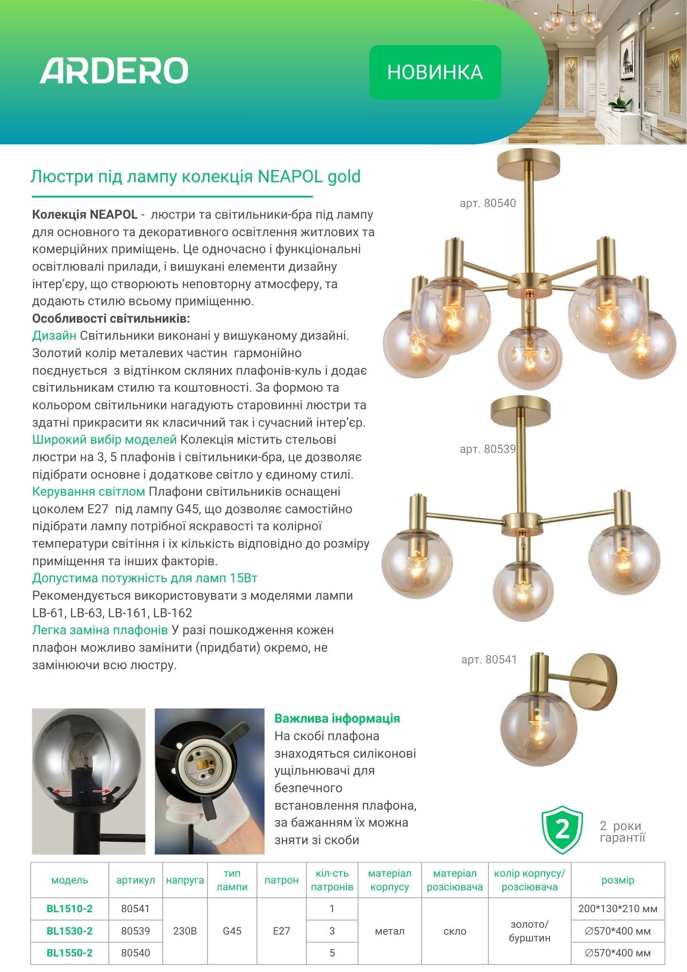 Колекція NEAPOL - люстри та світильники-бра під лампу для основного та декоративного освітлення житлових та комерційних приміщень. Це одночасно і функціональні освітлювальні прилади, і вишукані елементи дизайну інтер’єру, що створюють неповторну атмосферу, та додають стилю всьому приміщенню.