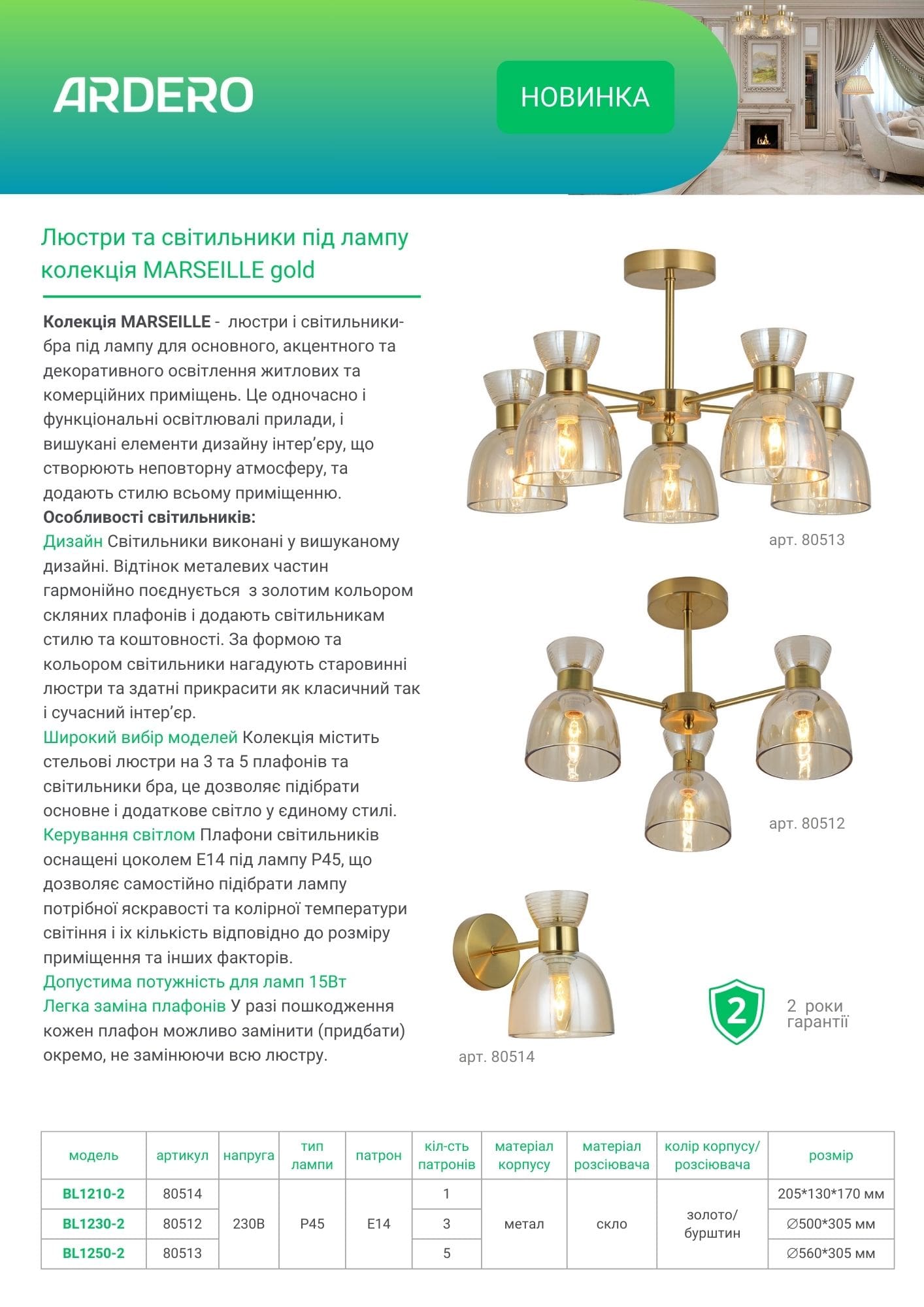 Скляний плафон для моделей Ardero BL1230-2, BL1250-2, BL1210-2 MARSEILLE