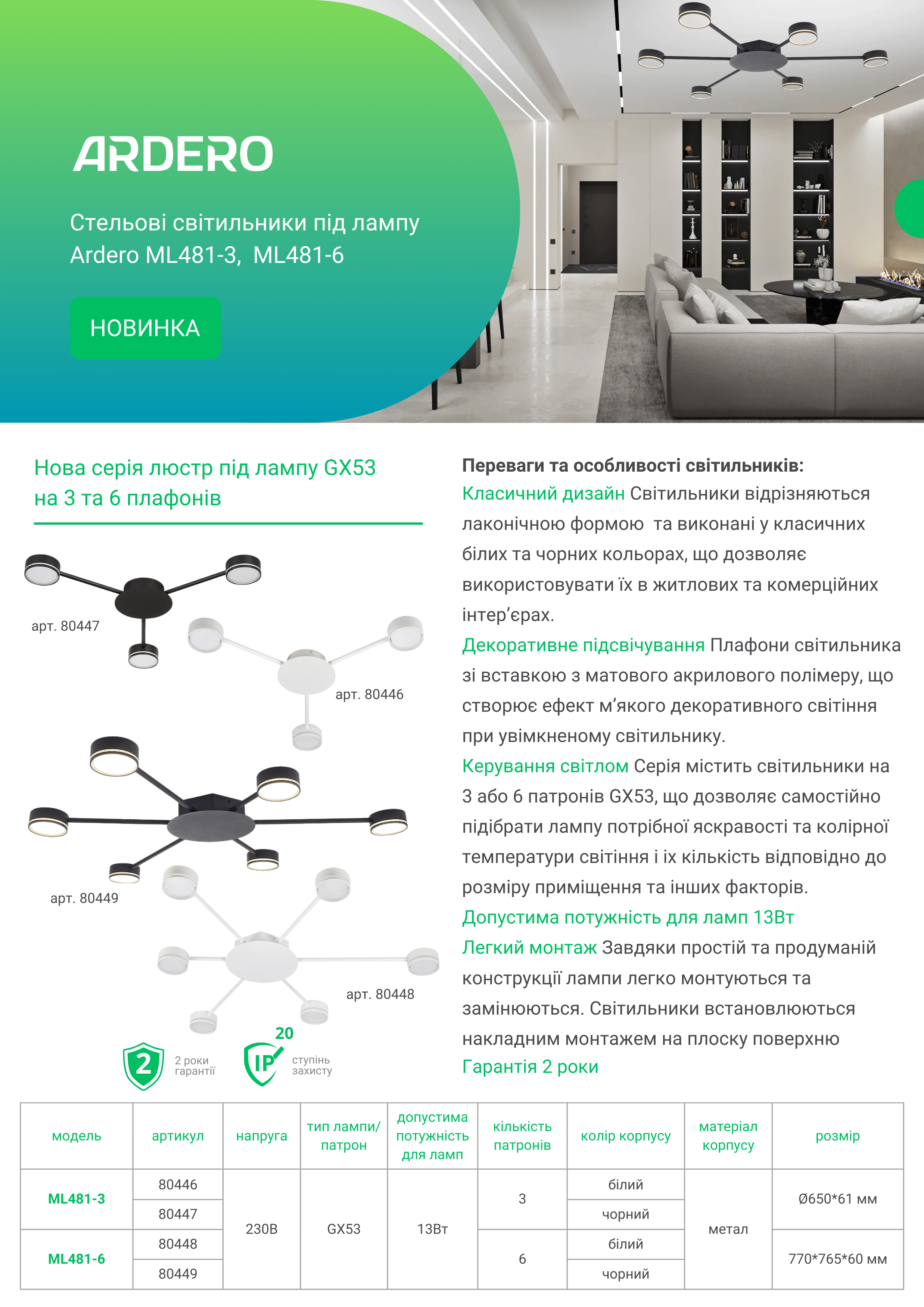 Нова серія люстр під лампу GХ53 на 3 та 6 плафонів