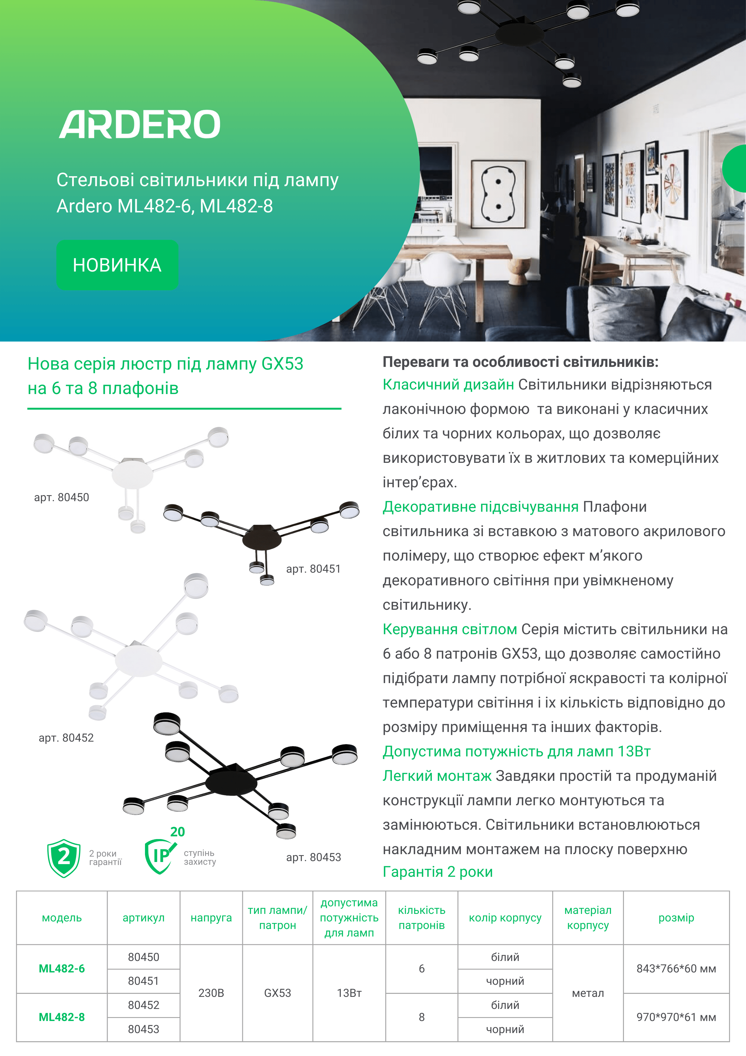 Нова серія люстр під лампу GХ53 на 6 та 8 плафонів